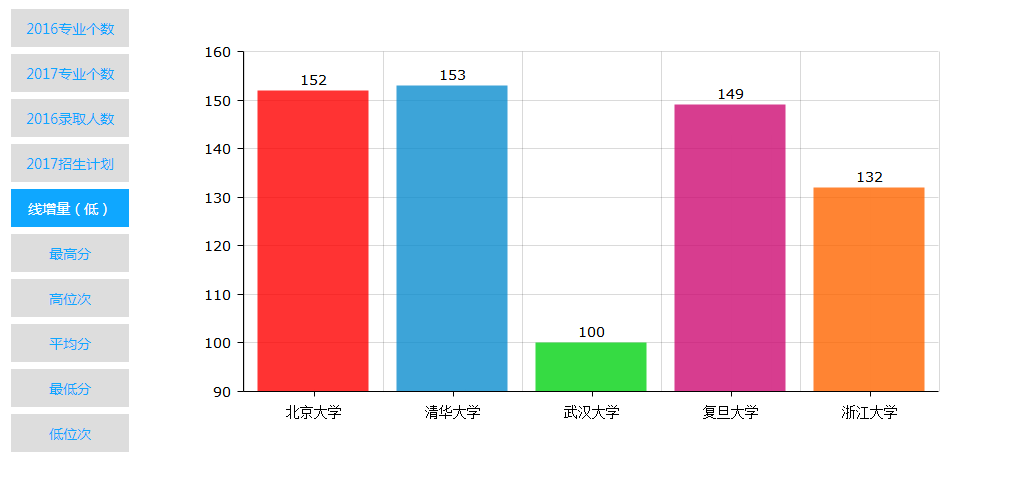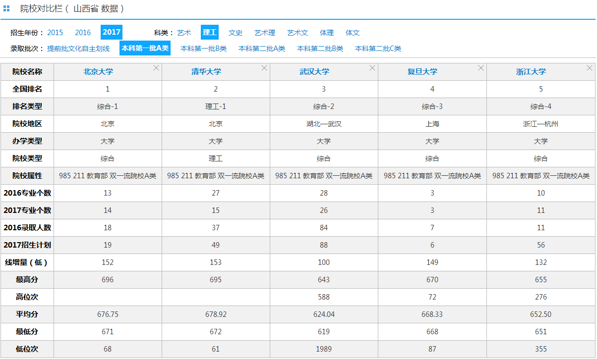(2) 院校之间基本信息、最高分、最低分、平均分、计划数等可以做对比。