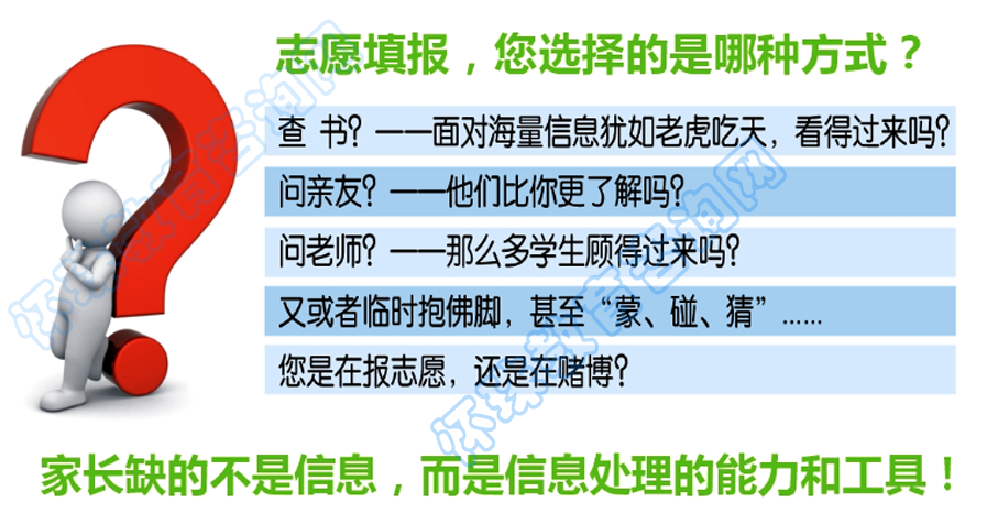 在信息爆炸的当今社会,家长面对海量信息,往往无从下手、束手无策。如何鉴别信息、如何合理有效的使用信息、如何在院校志愿与专业志愿这对矛盾中找到一个平衡点,也是检验每一位家长智慧和心理素质的试金石!