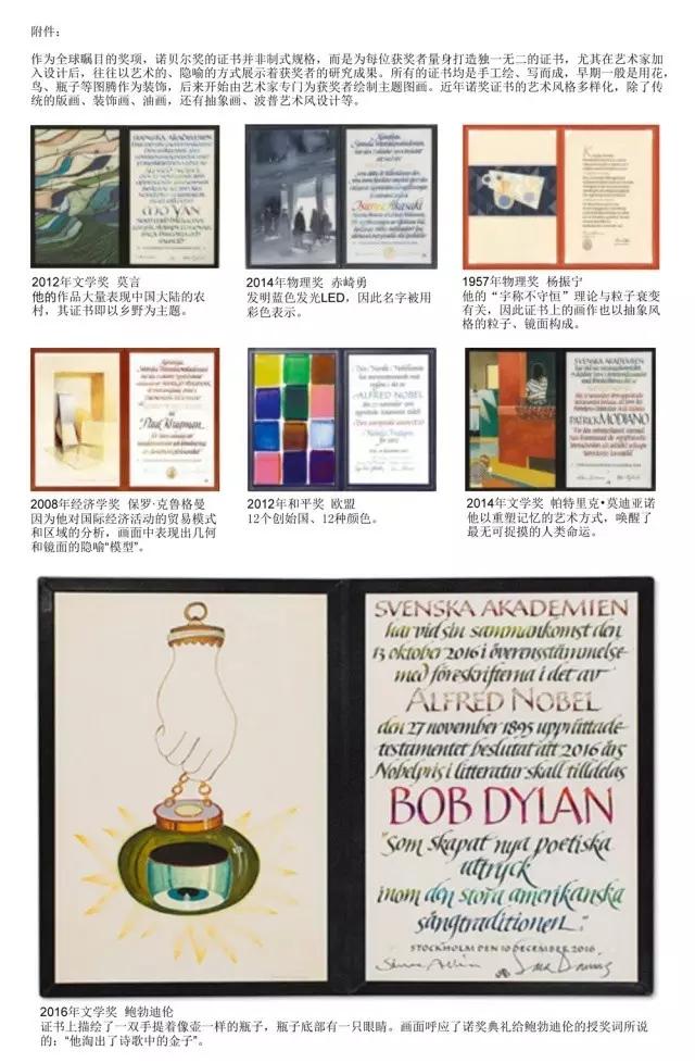 1.根据所提供附件背景信息,为2016年诺贝尔文学奖获得者鲍勃·迪伦设计一款获奖证书;