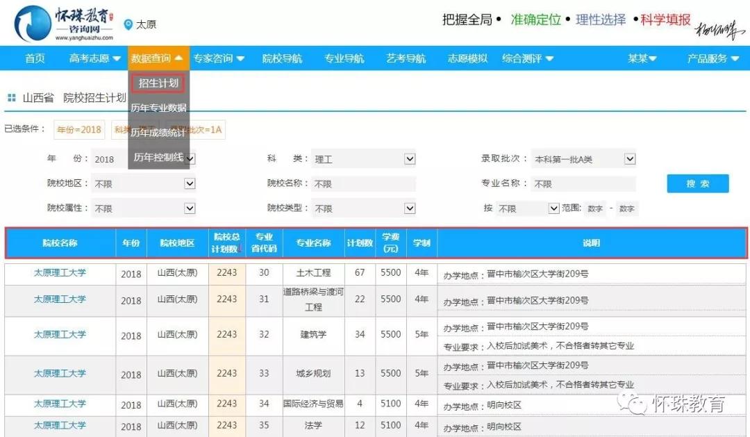 考生及家长可以通过电脑、平板电脑、手机登录怀珠教育咨询网(www.yanghuaizhu.com)点击菜单栏中的院校导航或者专业导航就可以查询到考生及家长想查询的信息。