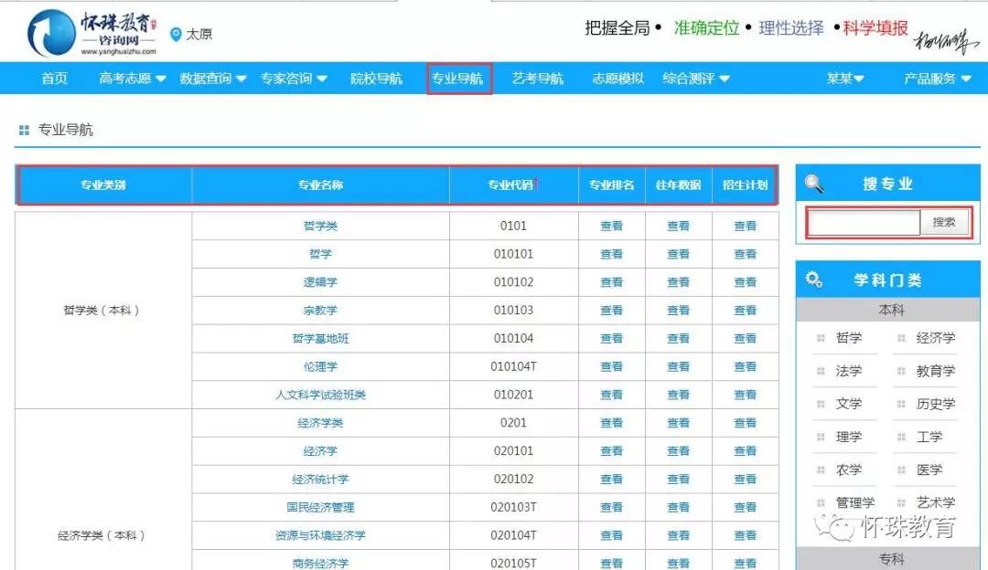 八、怀珠教育咨询网能否查到关于高校信息及专业的就业方向,或者各专业的主干学科等?