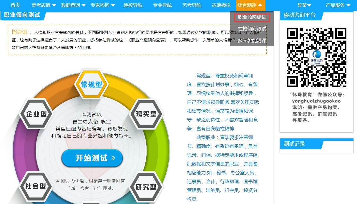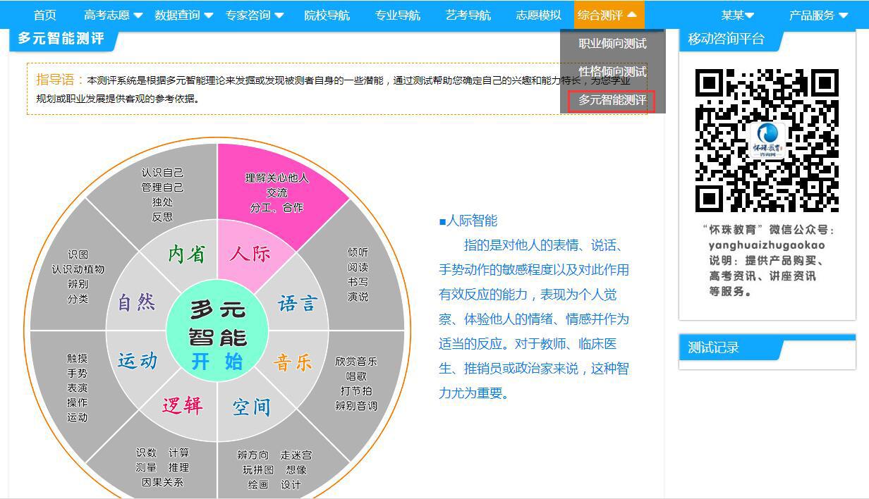 包括霍兰德职业倾向测试、性格倾向测试、多元智能测评、MBTI职业测评、学业压力测评,使高中生能更深入、更全面地认识自己,包括性格、兴趣、气质、职业能力、职业价值观等,帮助考生重新对自己的价值进行定位并使其持续增值。