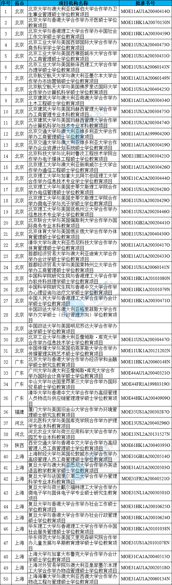 中外合作办学机构终止办学名单