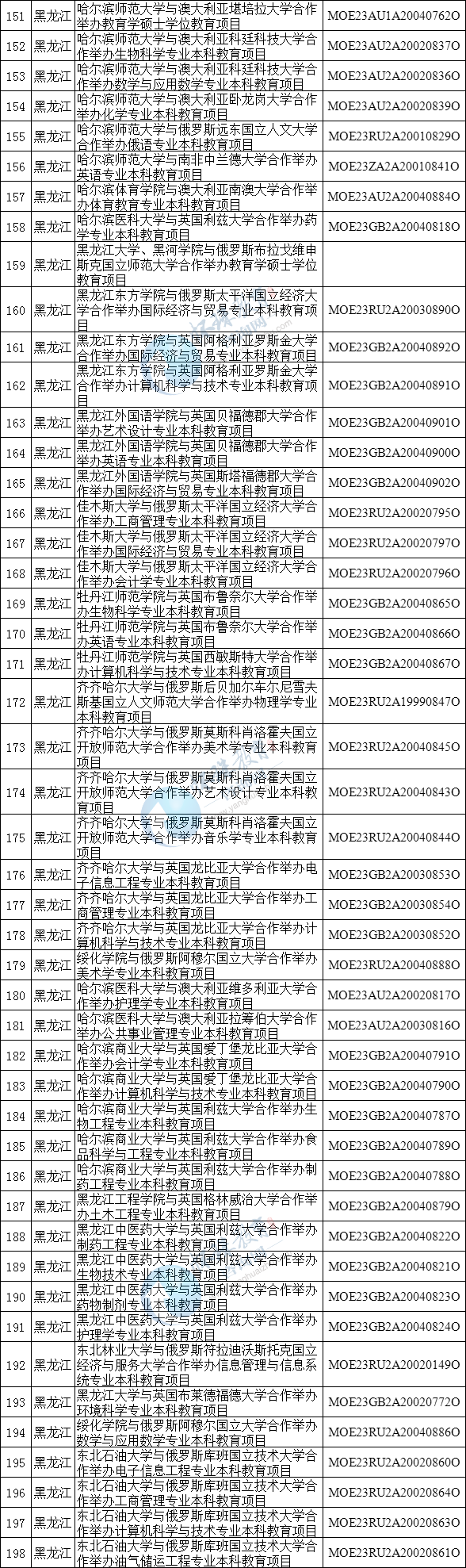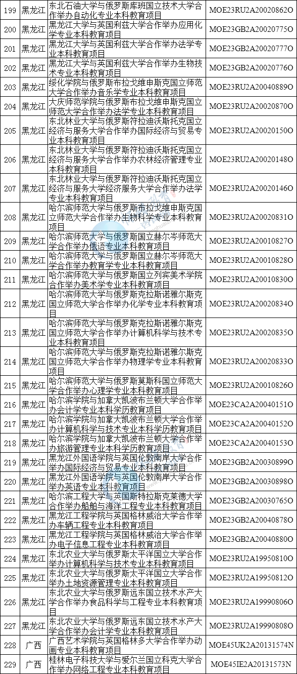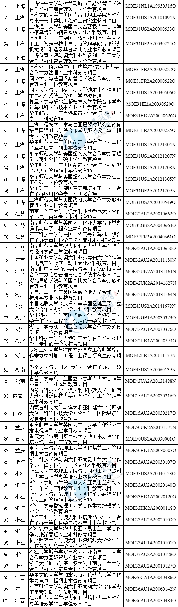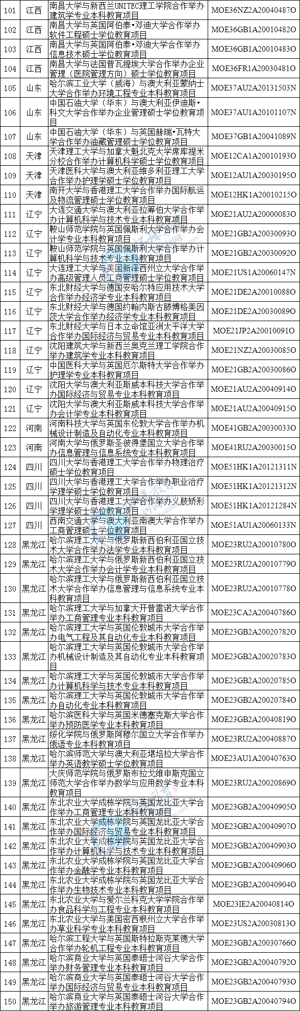 中外合作办学项目终止办学名单