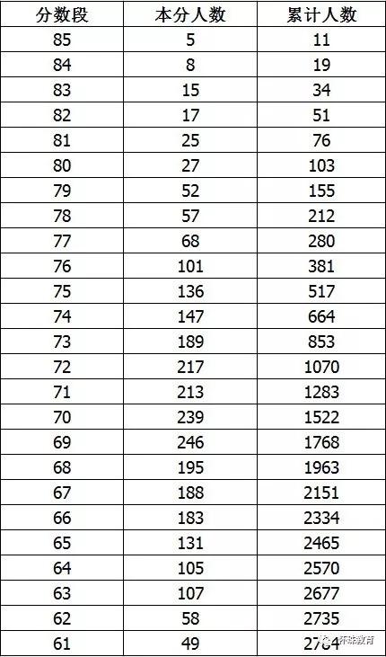 山西省2019年普通高考书法统考分数段统计表
