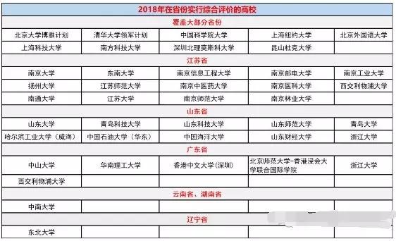 根据阳光高考网综合评价公示名单统计,2018年部分高校综合评价录取情况如下: