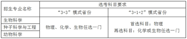 2021年中国农业大学强基计划招收专业为:生物科学、种子科学与工程、动物科学,考生可填报一至三个专业志愿,并填报是否服从专业调剂。非高考综合改革省份招收理工类考生;高考综合改革省份选考科目需满足以下要求:
