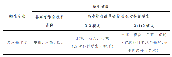 (3)高考综合改革省份考生选考科目要求须满足应用物理学专业对选考科目的要求。