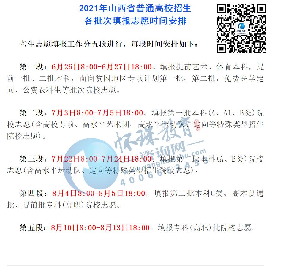 2021年山西省高校招生各批次填报志愿时间安排!