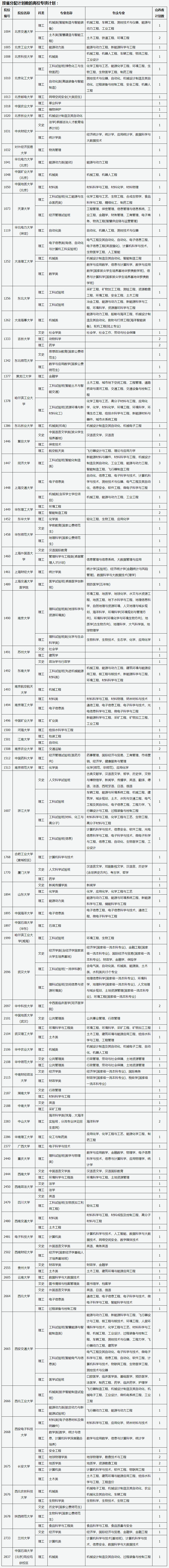 “高校专项计划”分两种,一种为按省分配计划数,另一种为不按省分配计划数。按省分配计划数的院校如下表,未列入下表的为不按省分配计划数的院校。