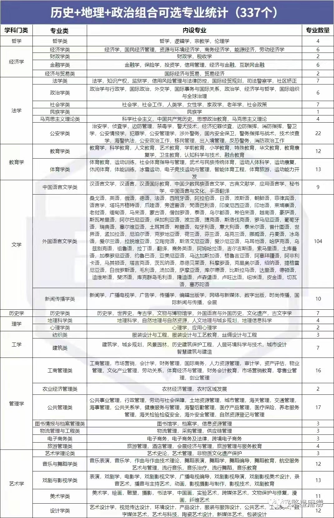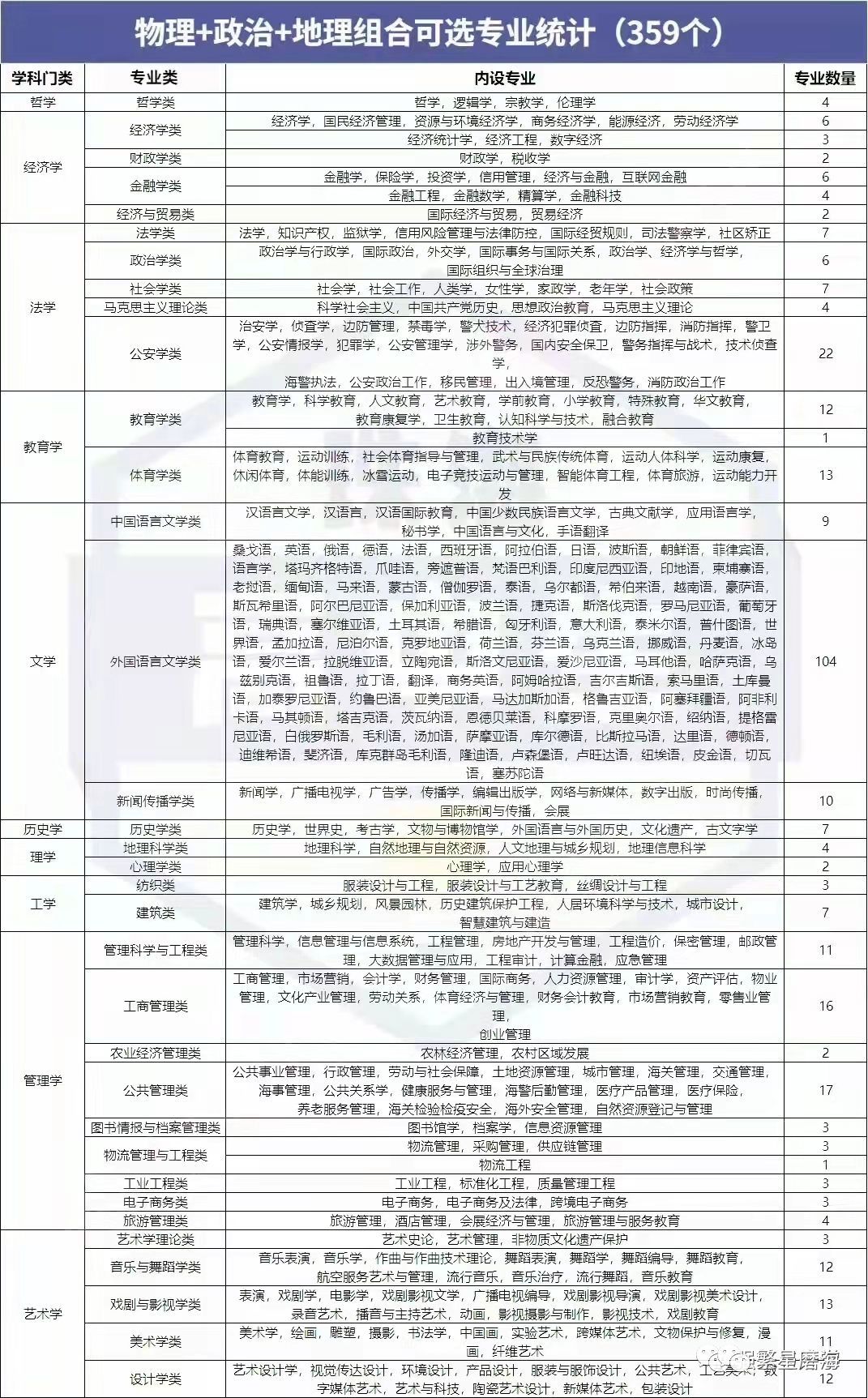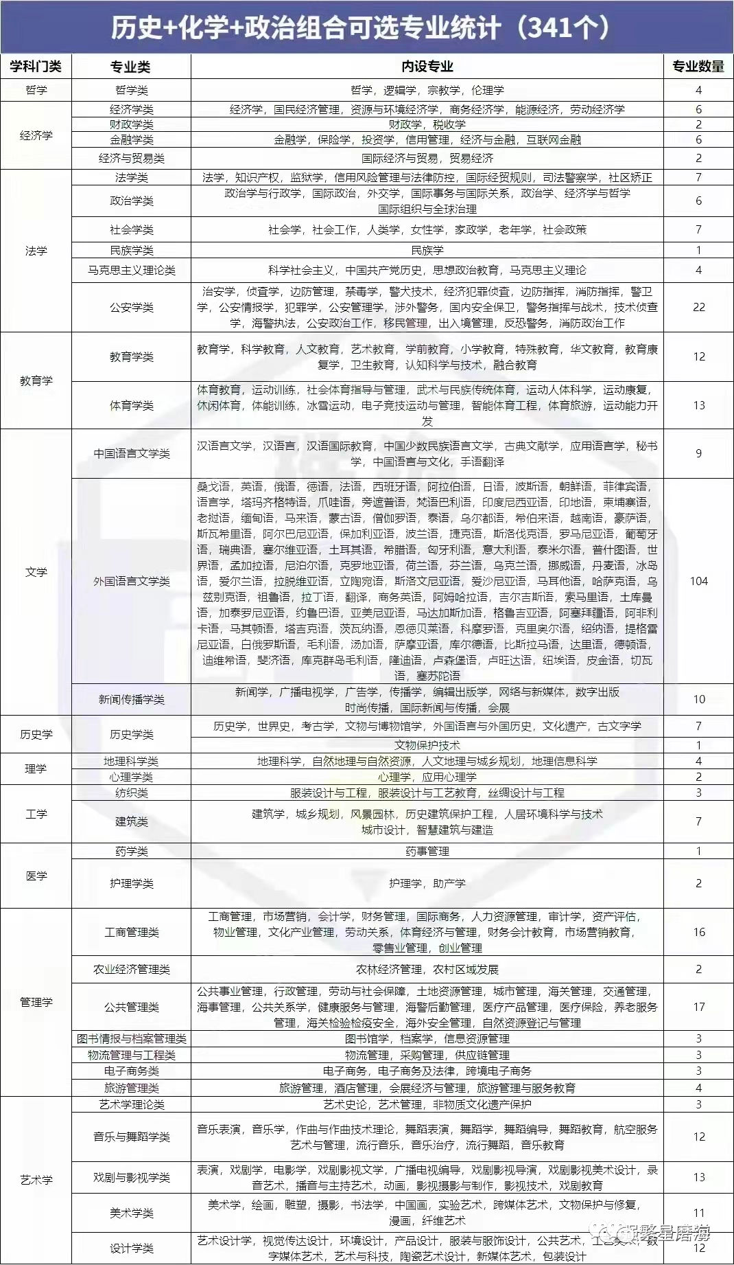 新高考模式“3+1+2”有12种选科组合。物化政是涉及高校专业种类最多的:
