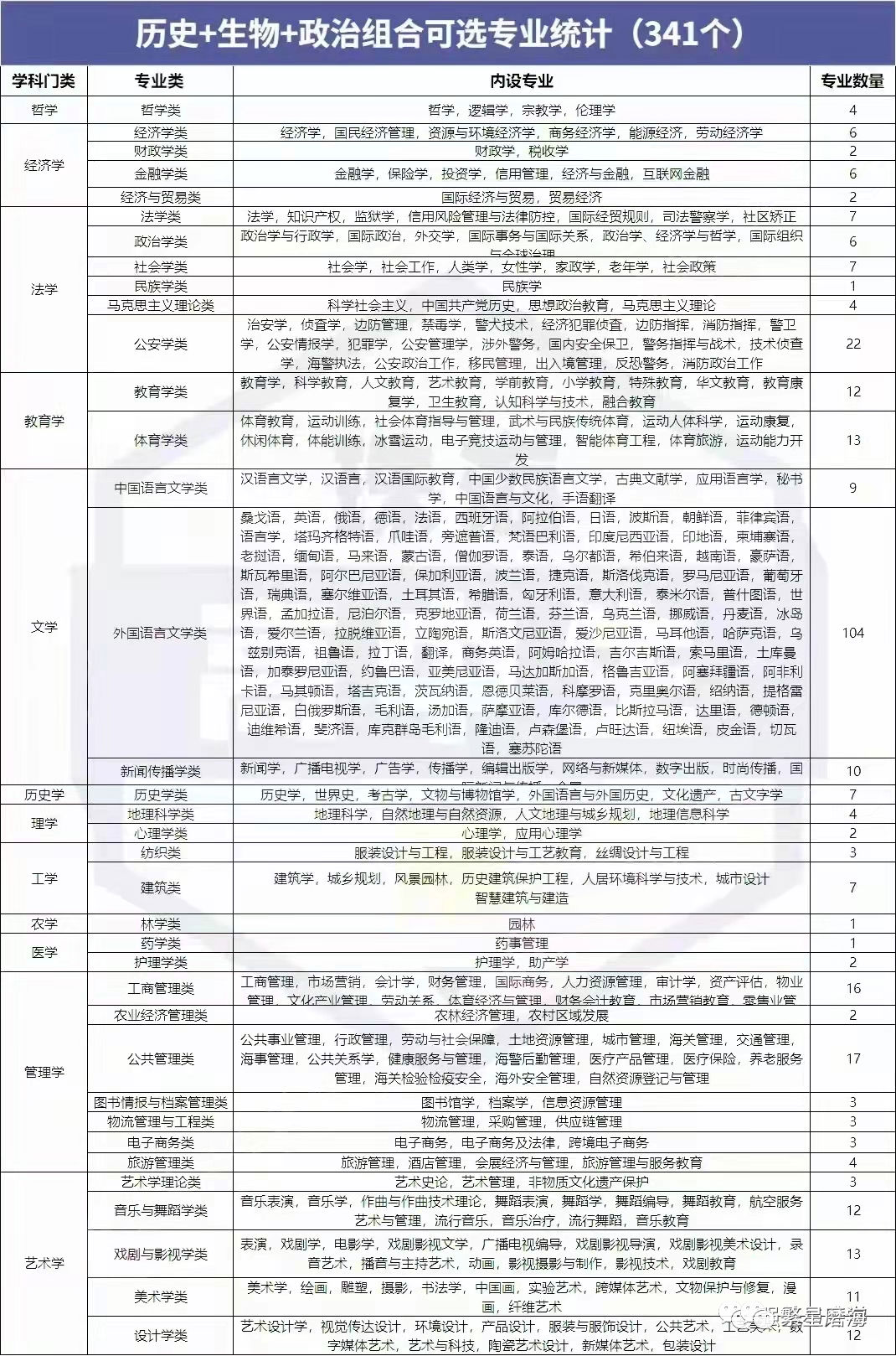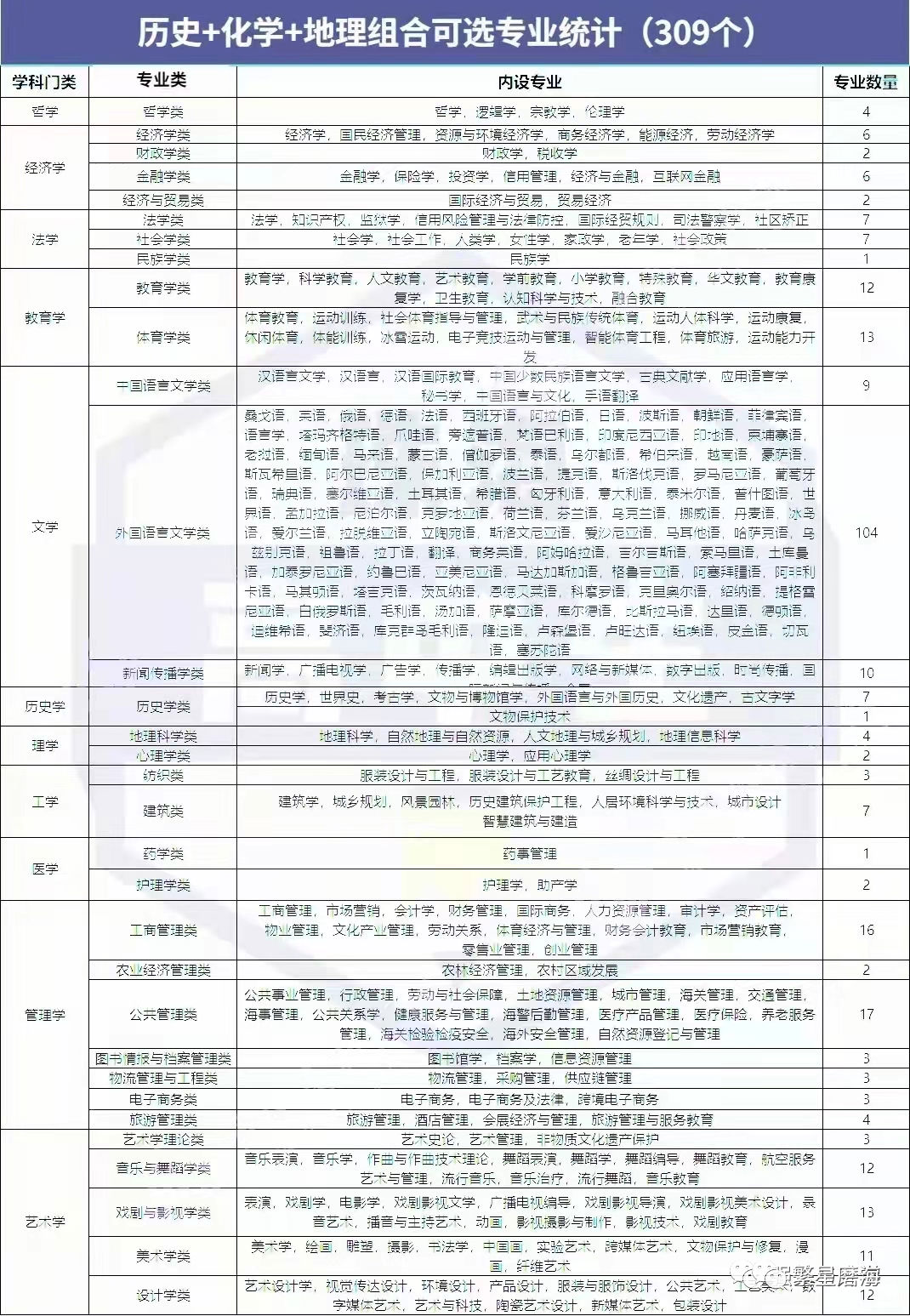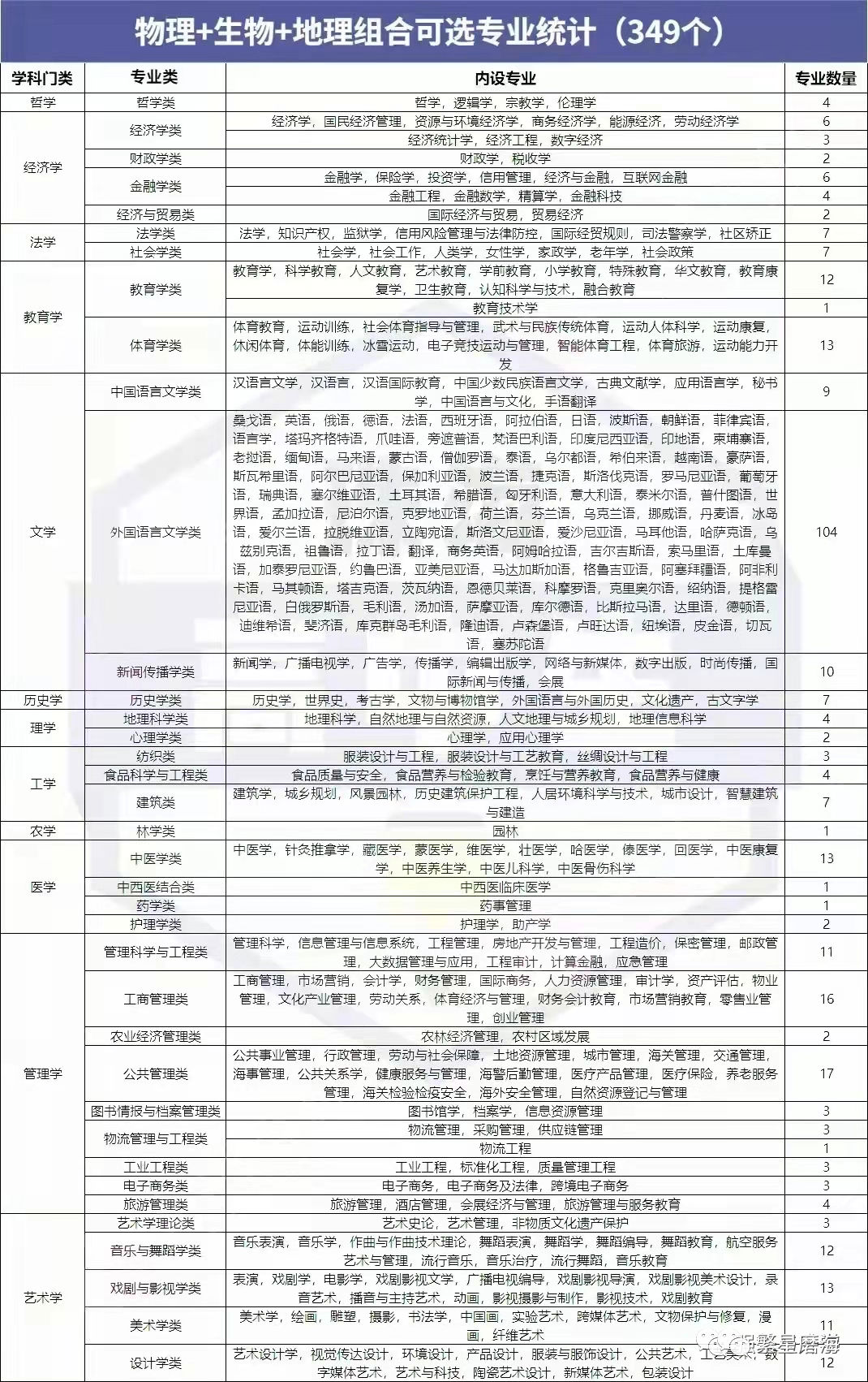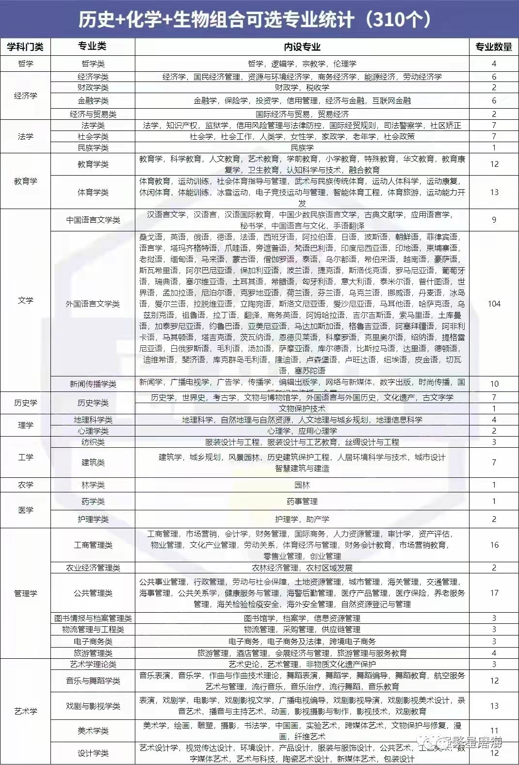 新高考模式“3+1+2”有12种选科组合。物化政是涉及高校专业种类最多的: