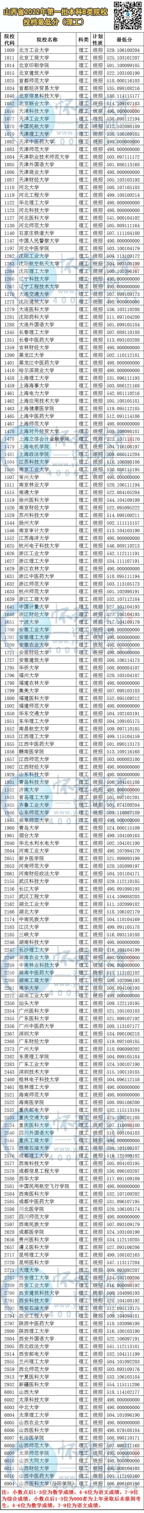 山西省2022年1B类院校投档线