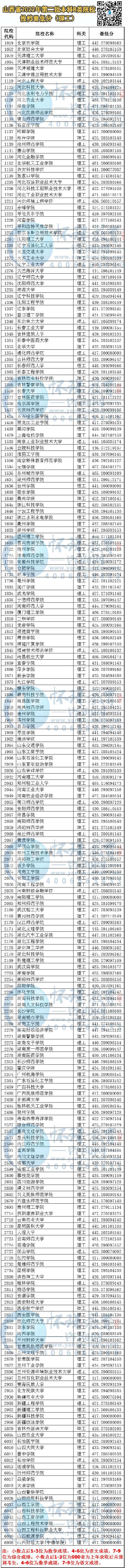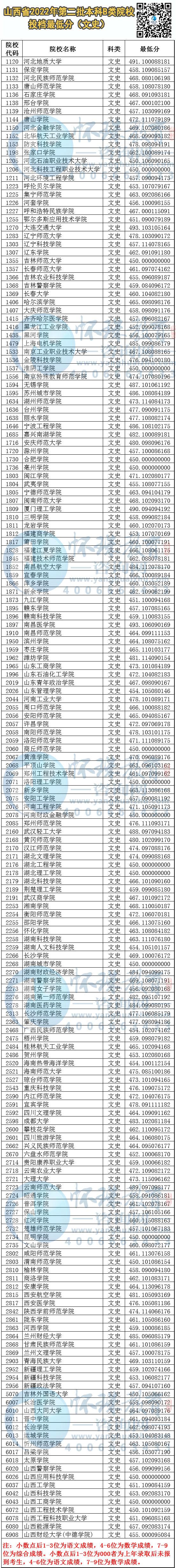 山西省2022年2B类院校投档线