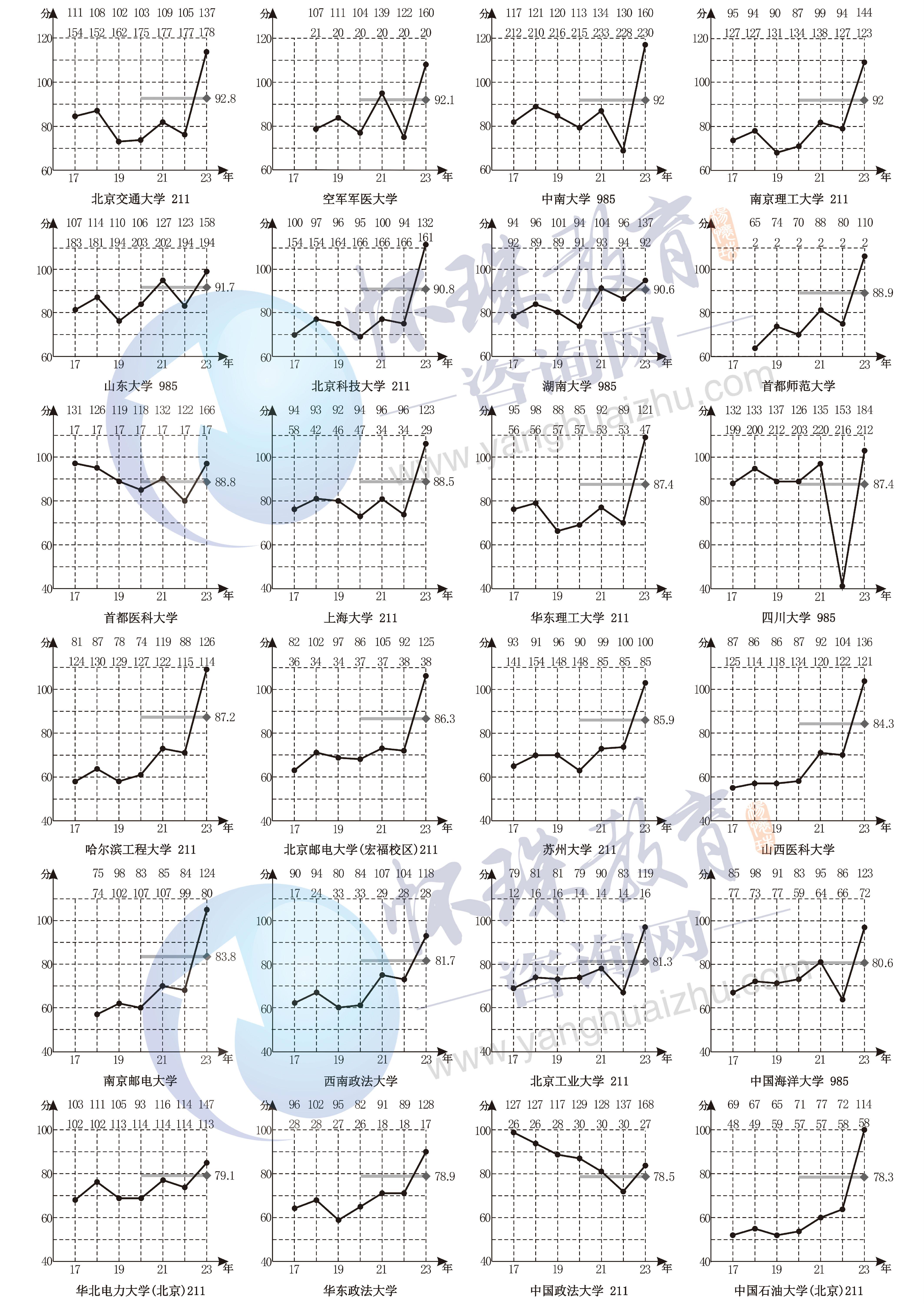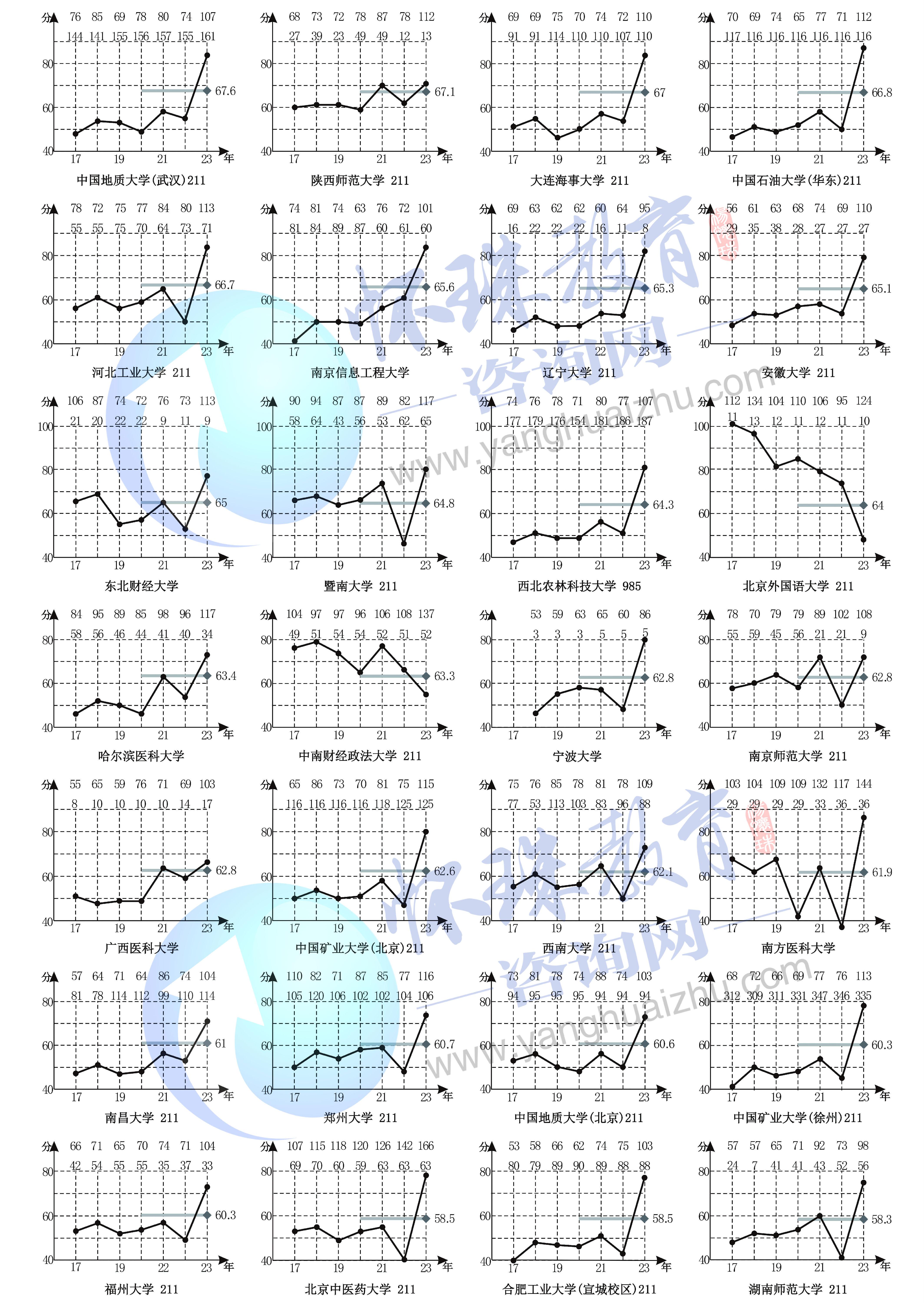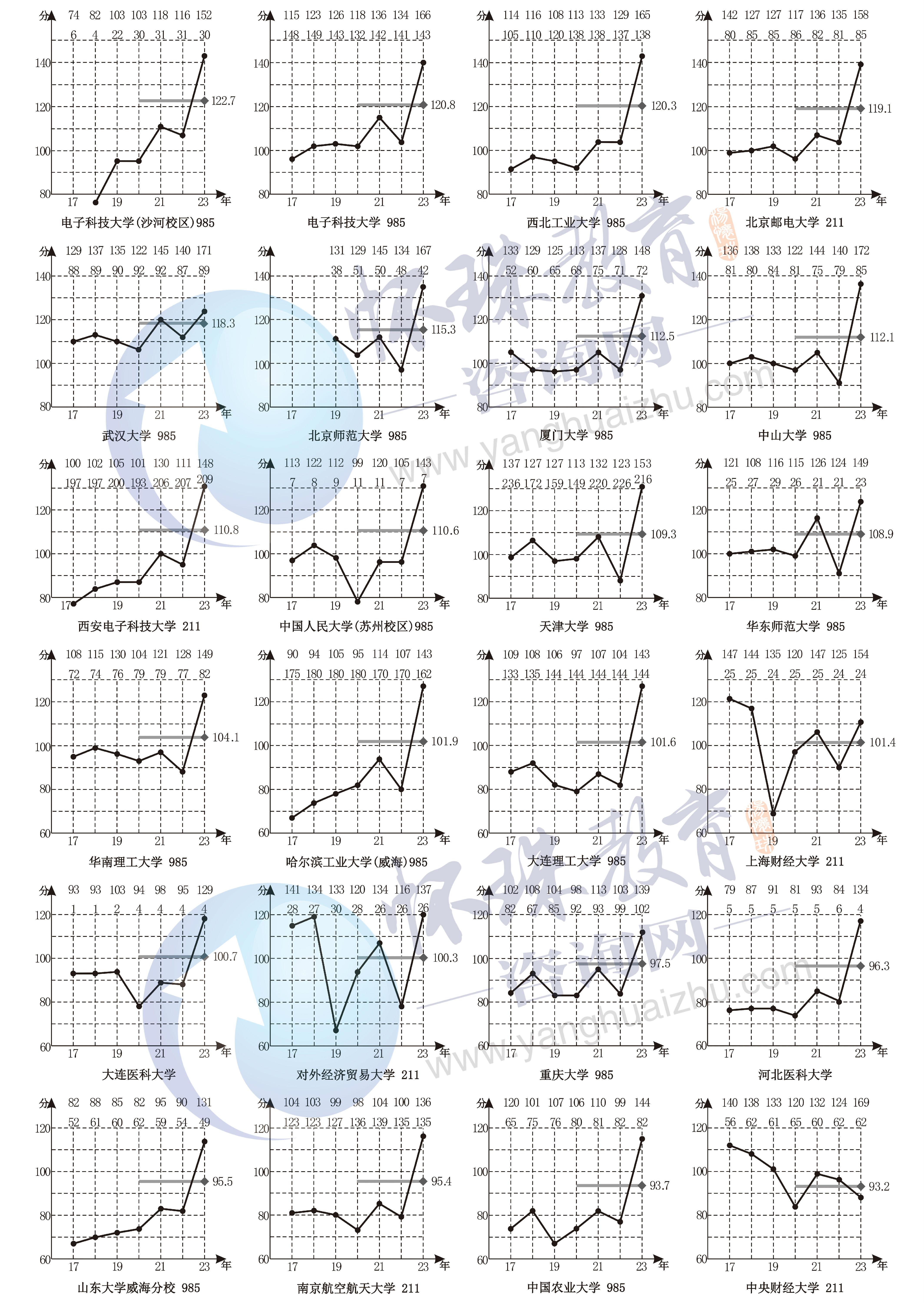 附录二十 2017~2023年第一批理科A类院校录取线走势图排序(1A理科)