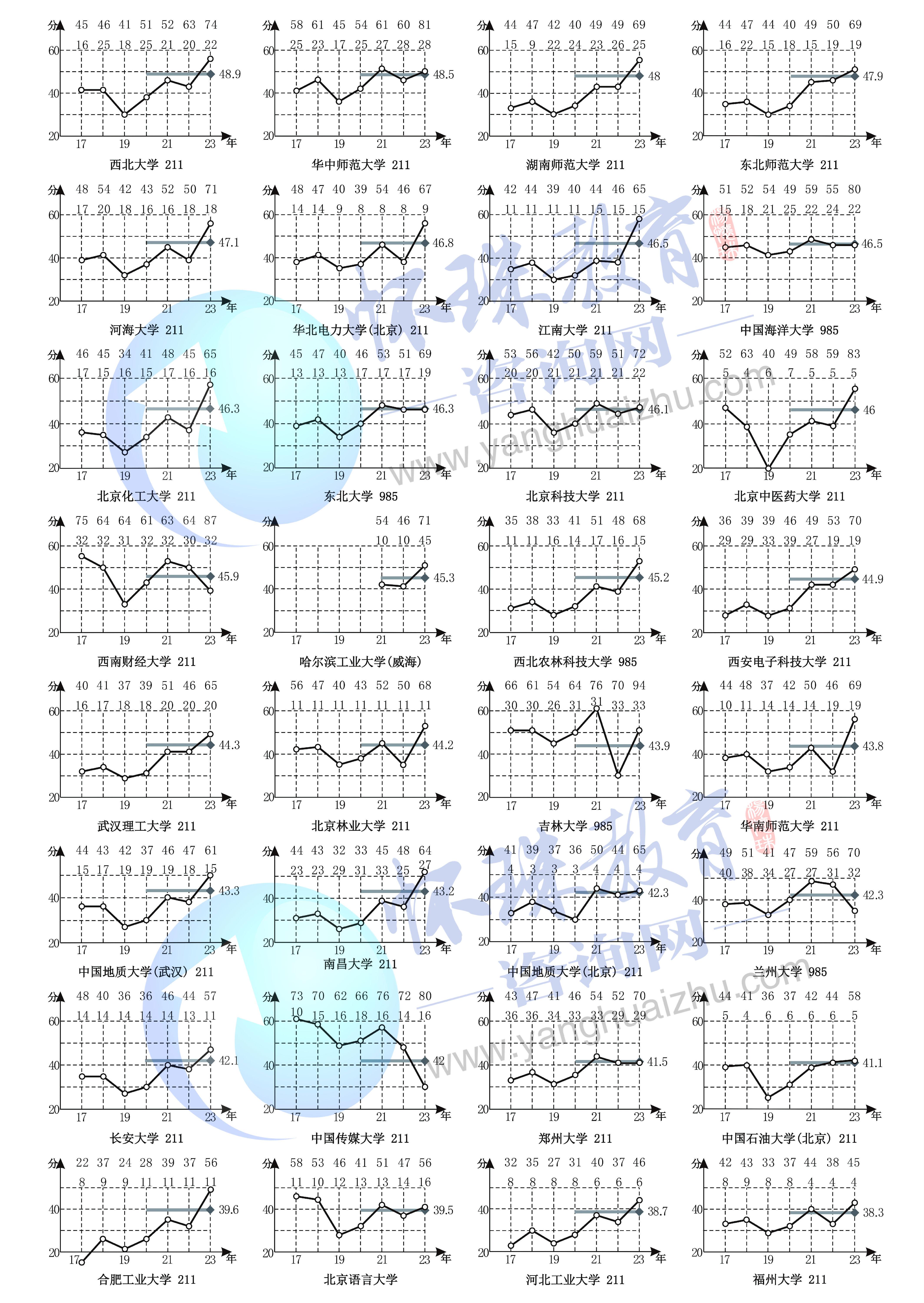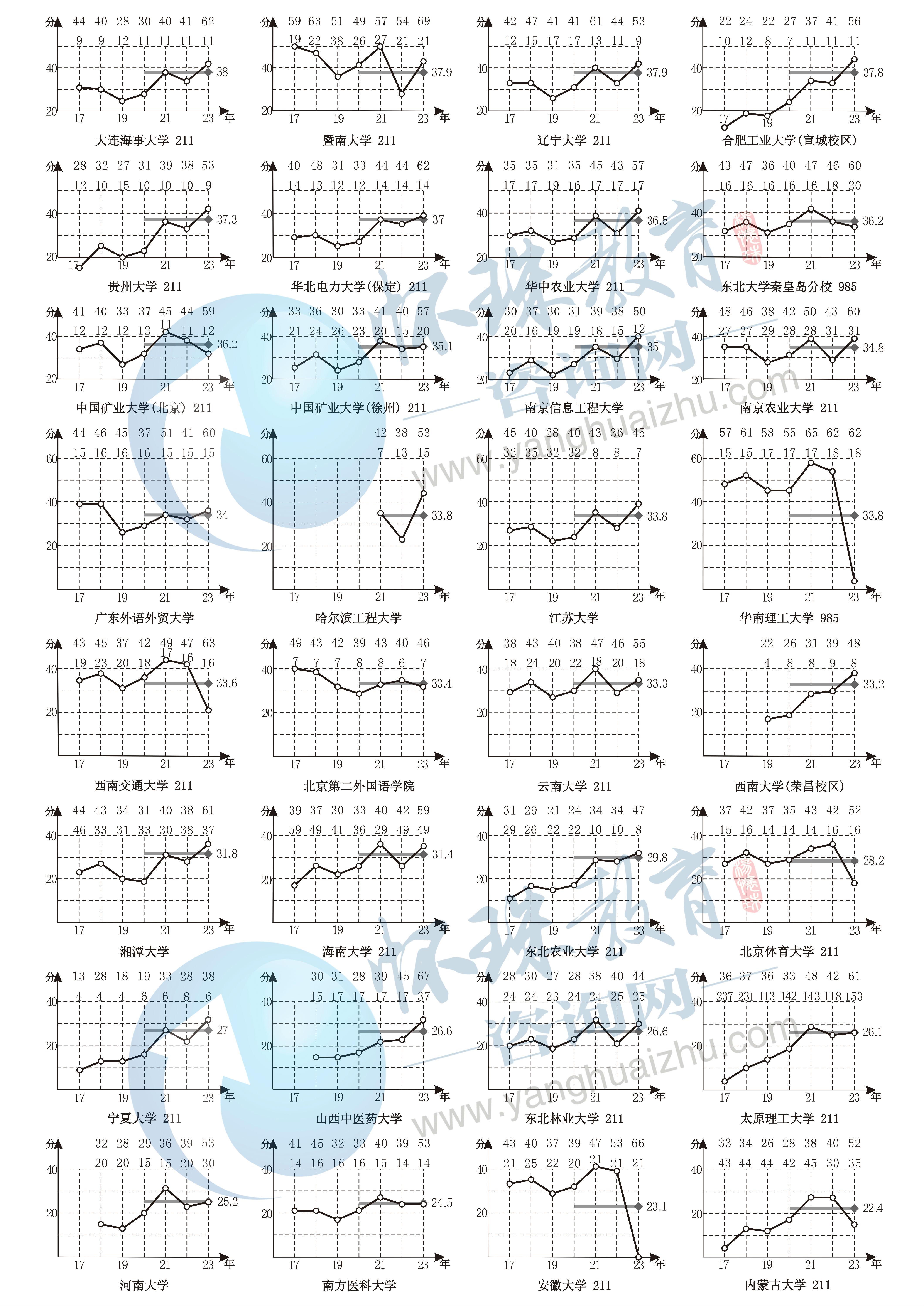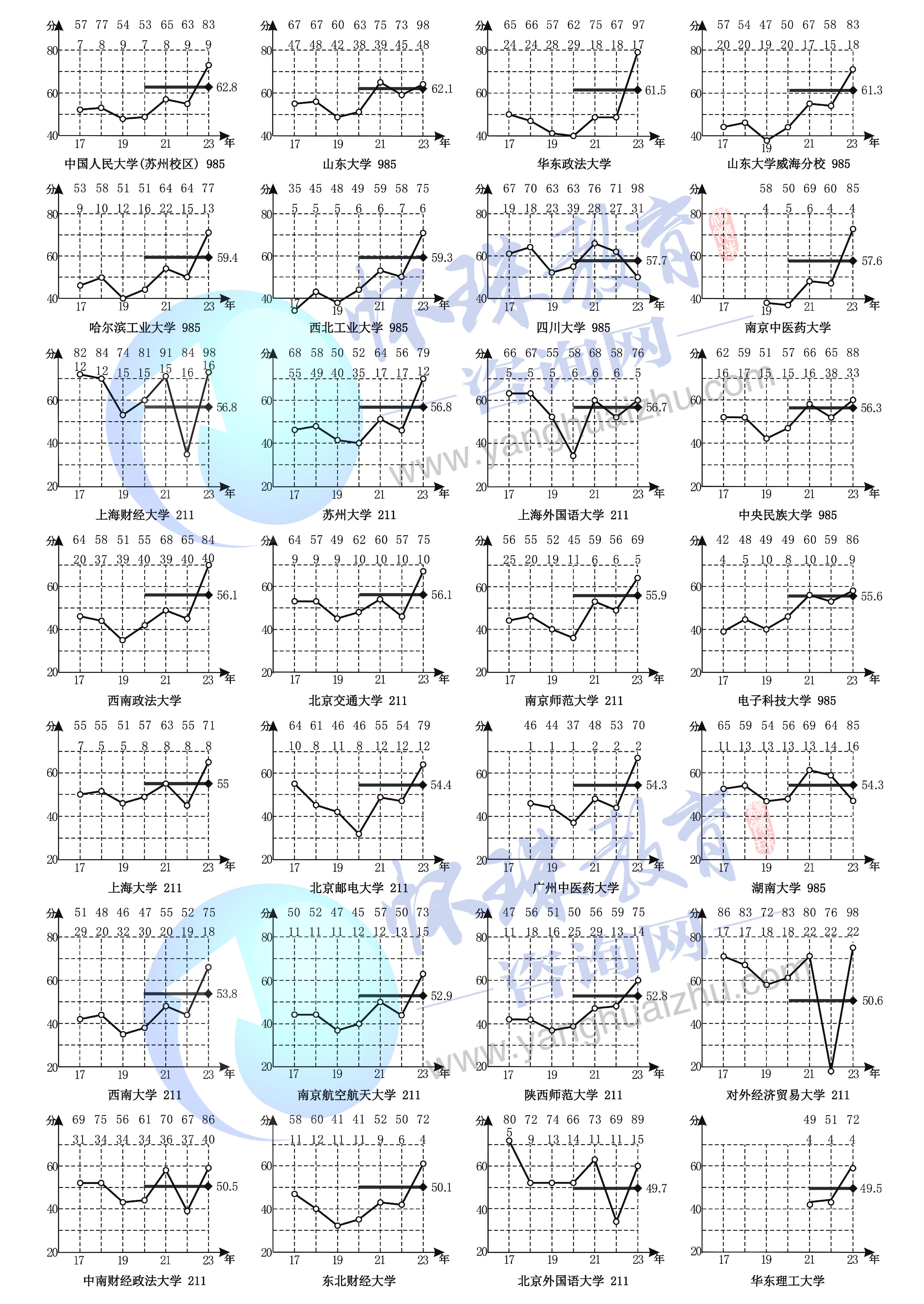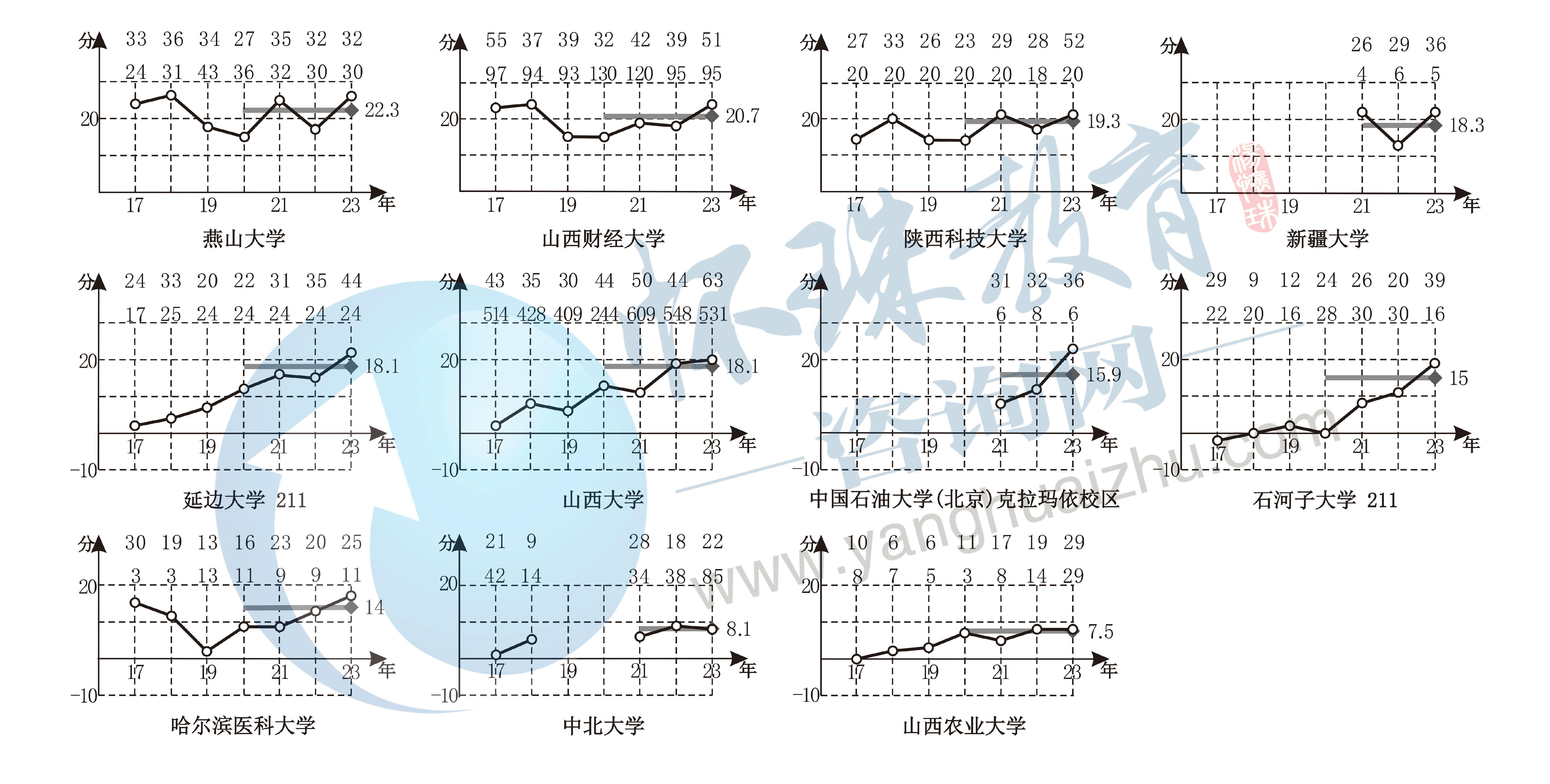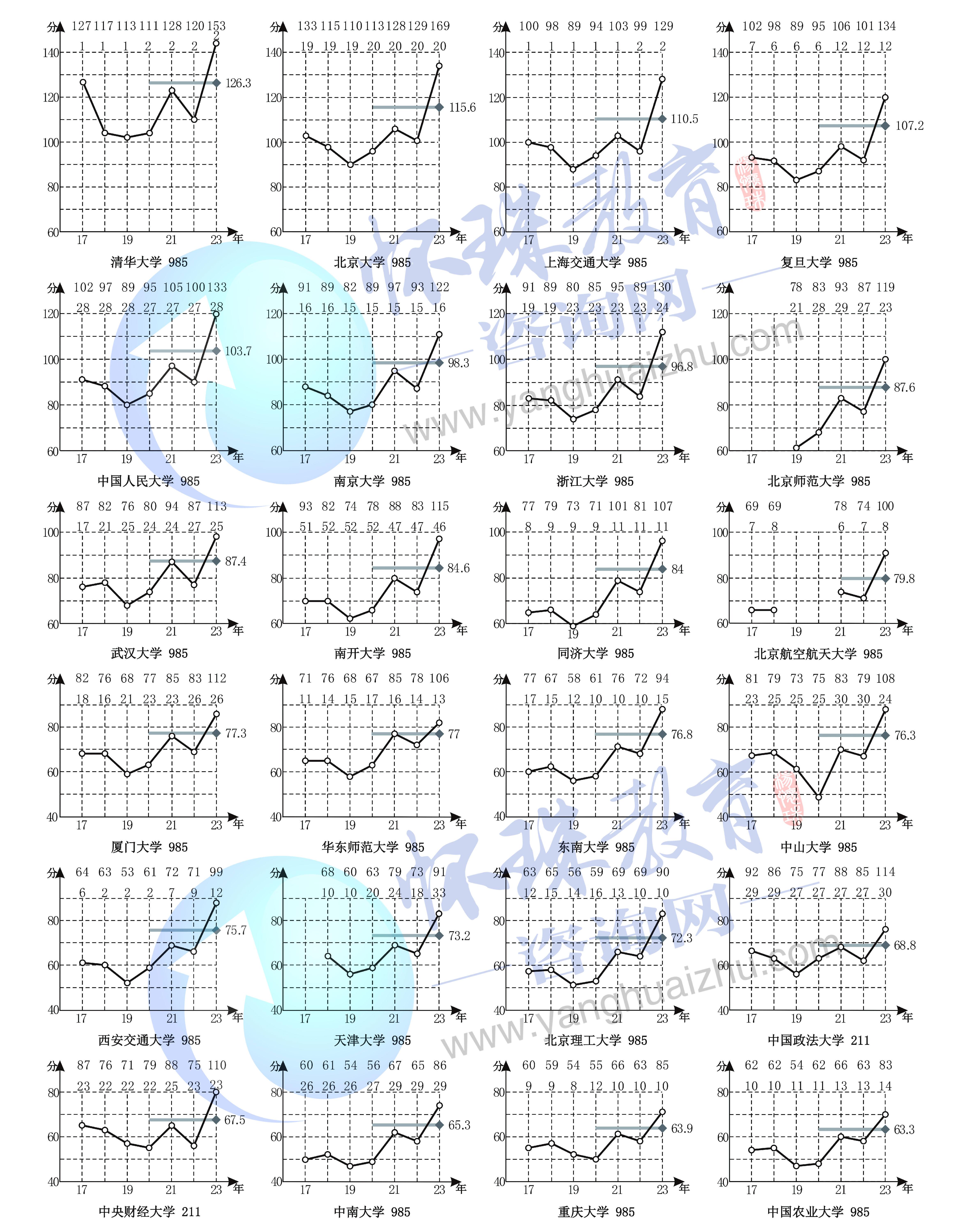 附录十二 2017~2023年第一批文科A类院校录取线走势图排序(1A文科)