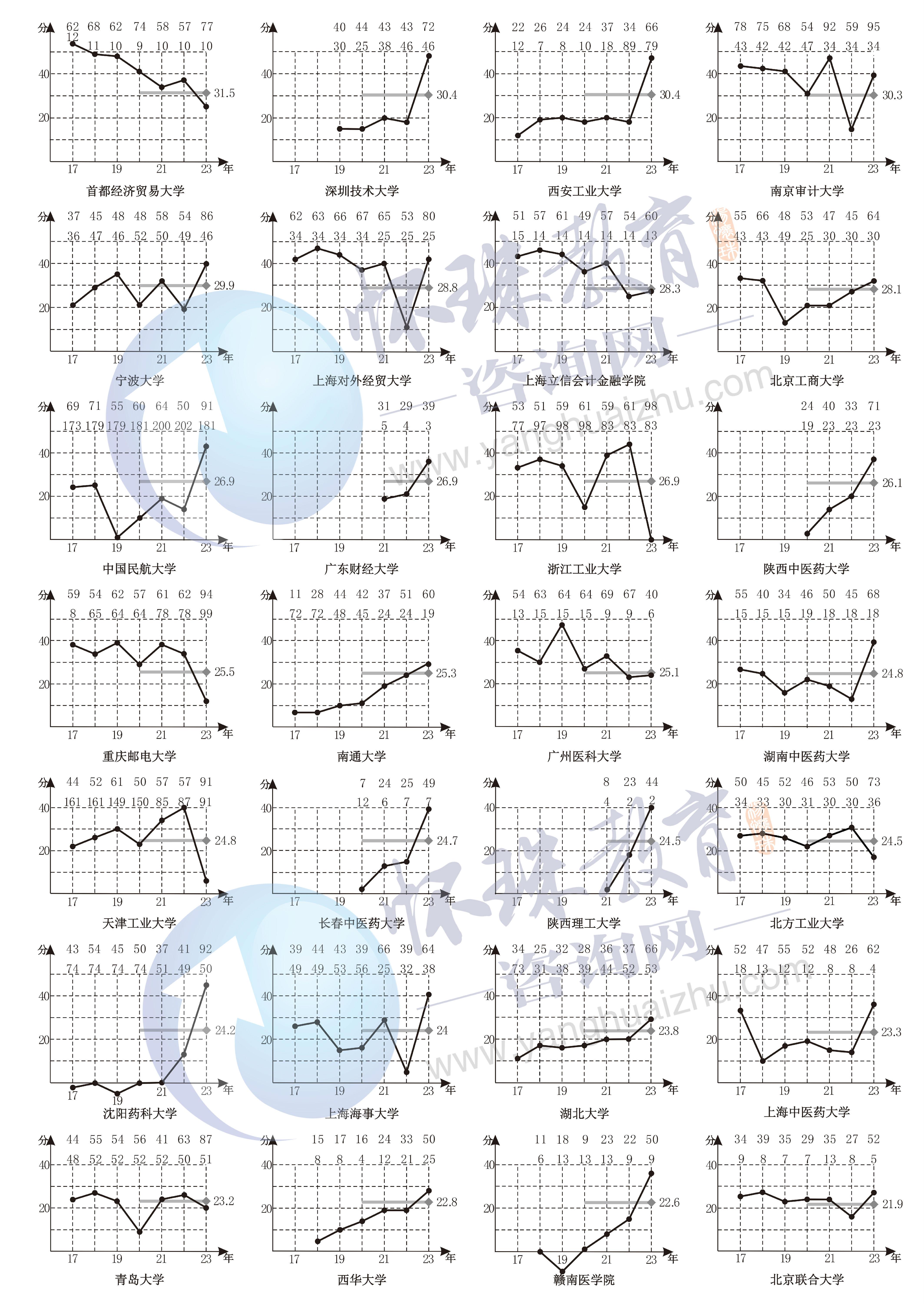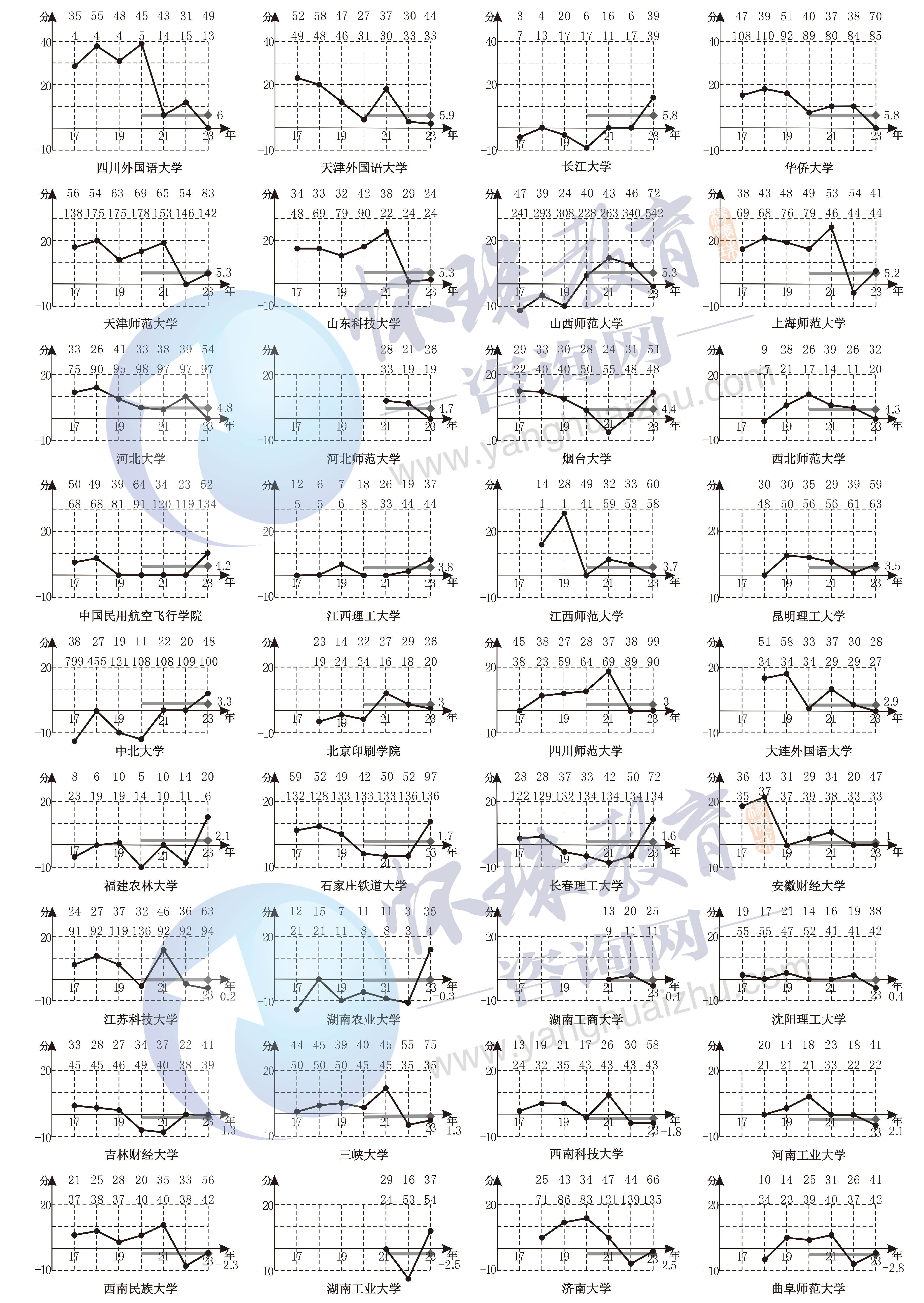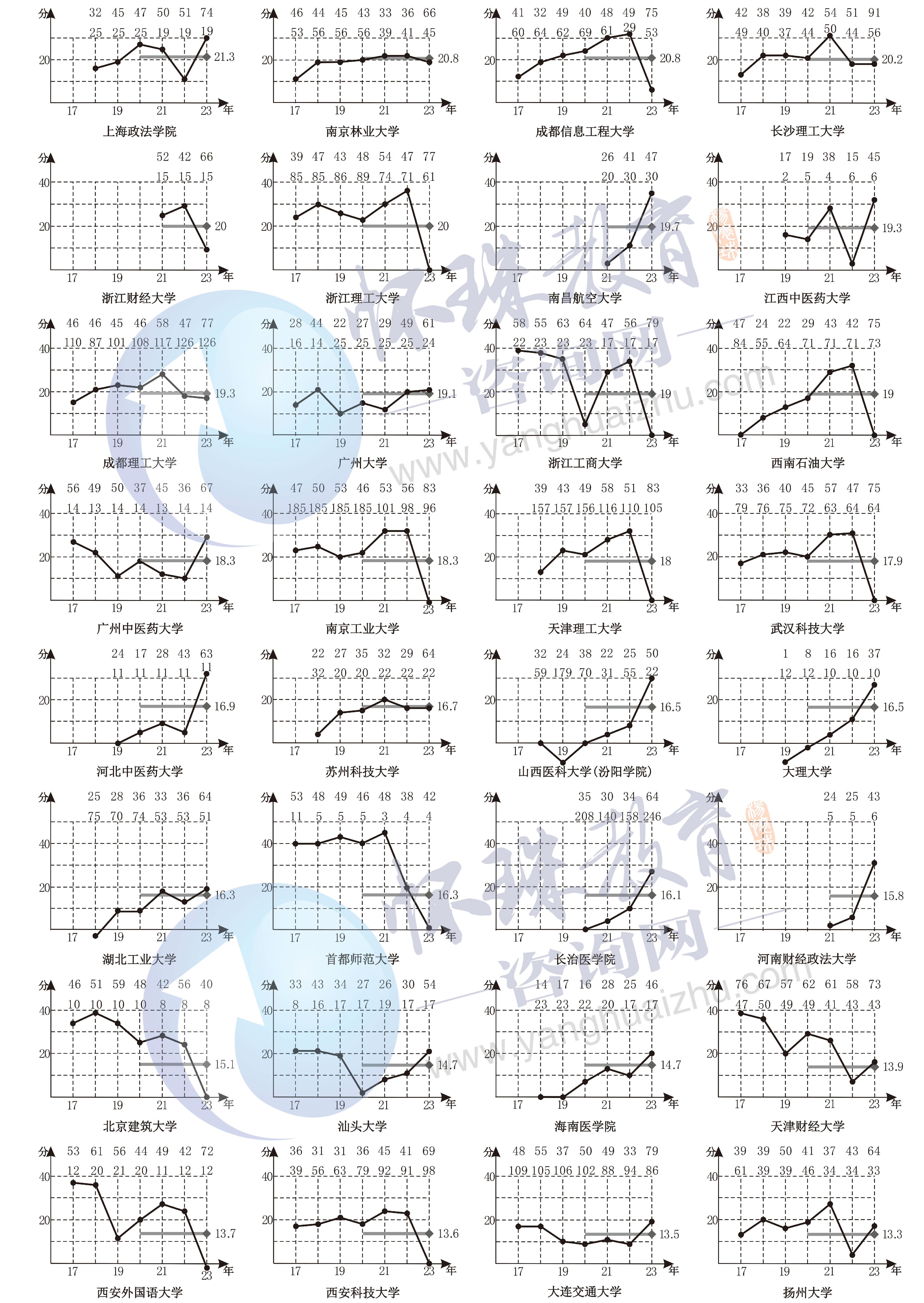 附录二十二 2017~2023年第一批理科B类院校录取线走势图排序(1B理科)