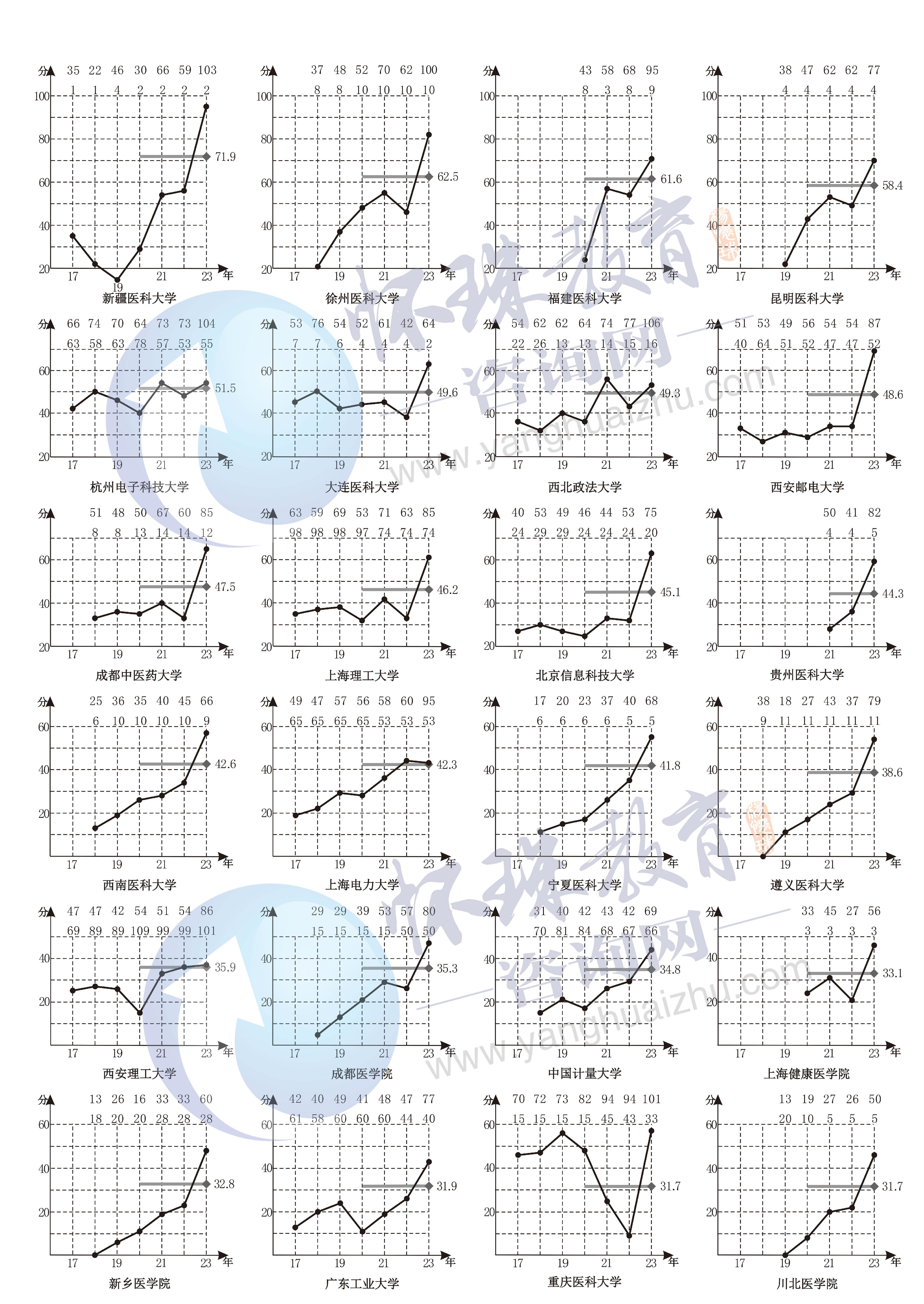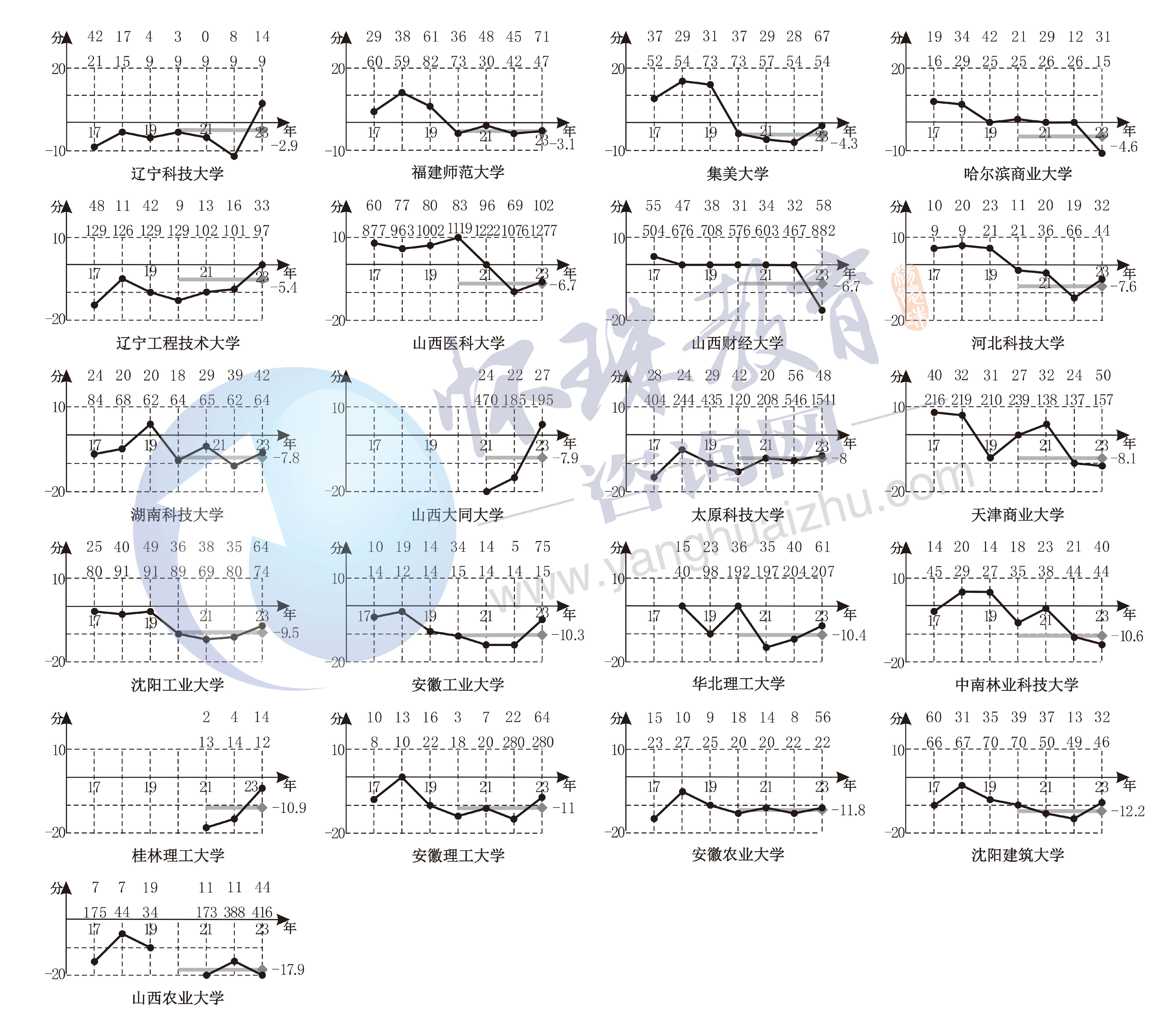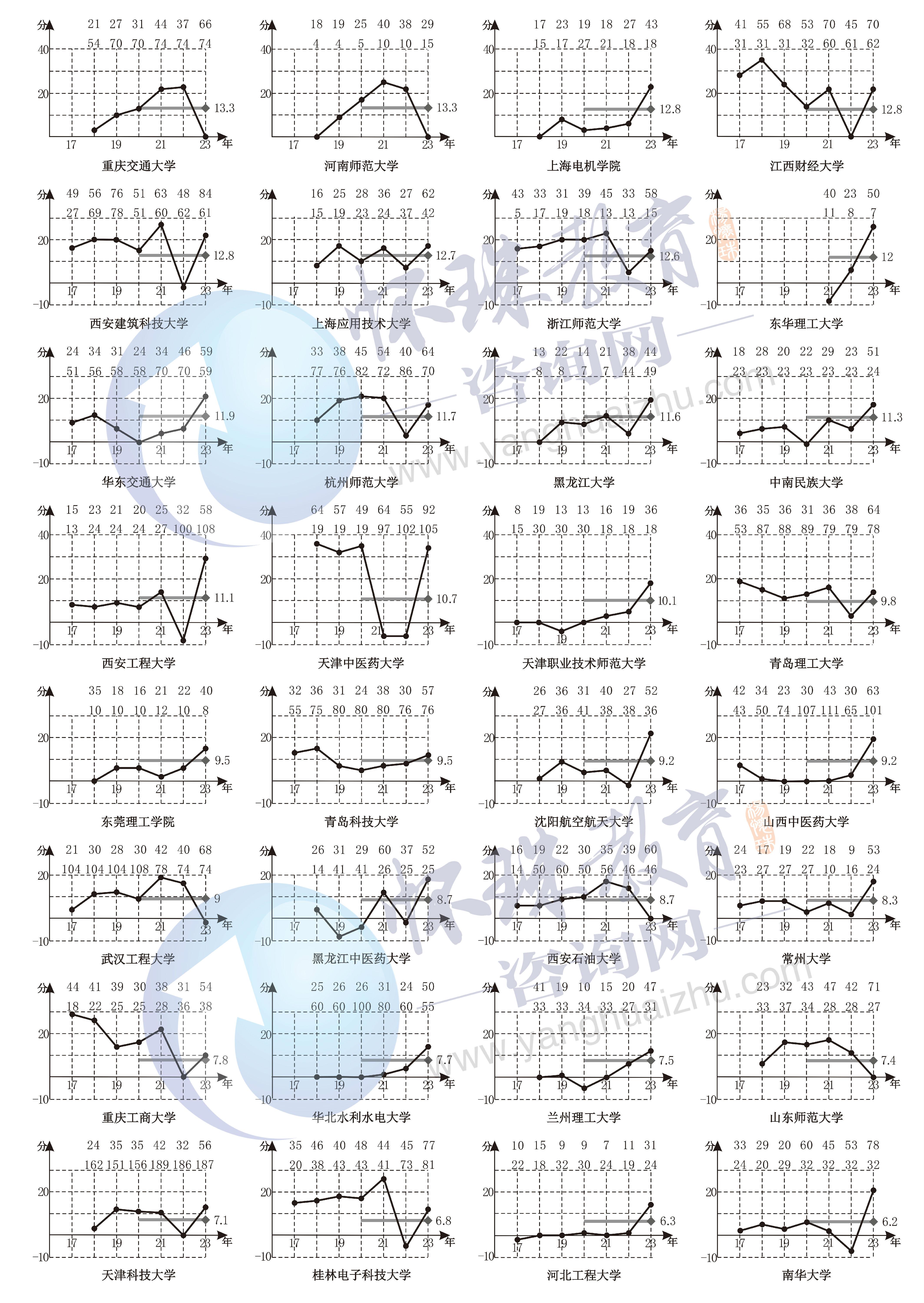 附录二十二 2017~2023年第一批理科B类院校录取线走势图排序(1B理科)