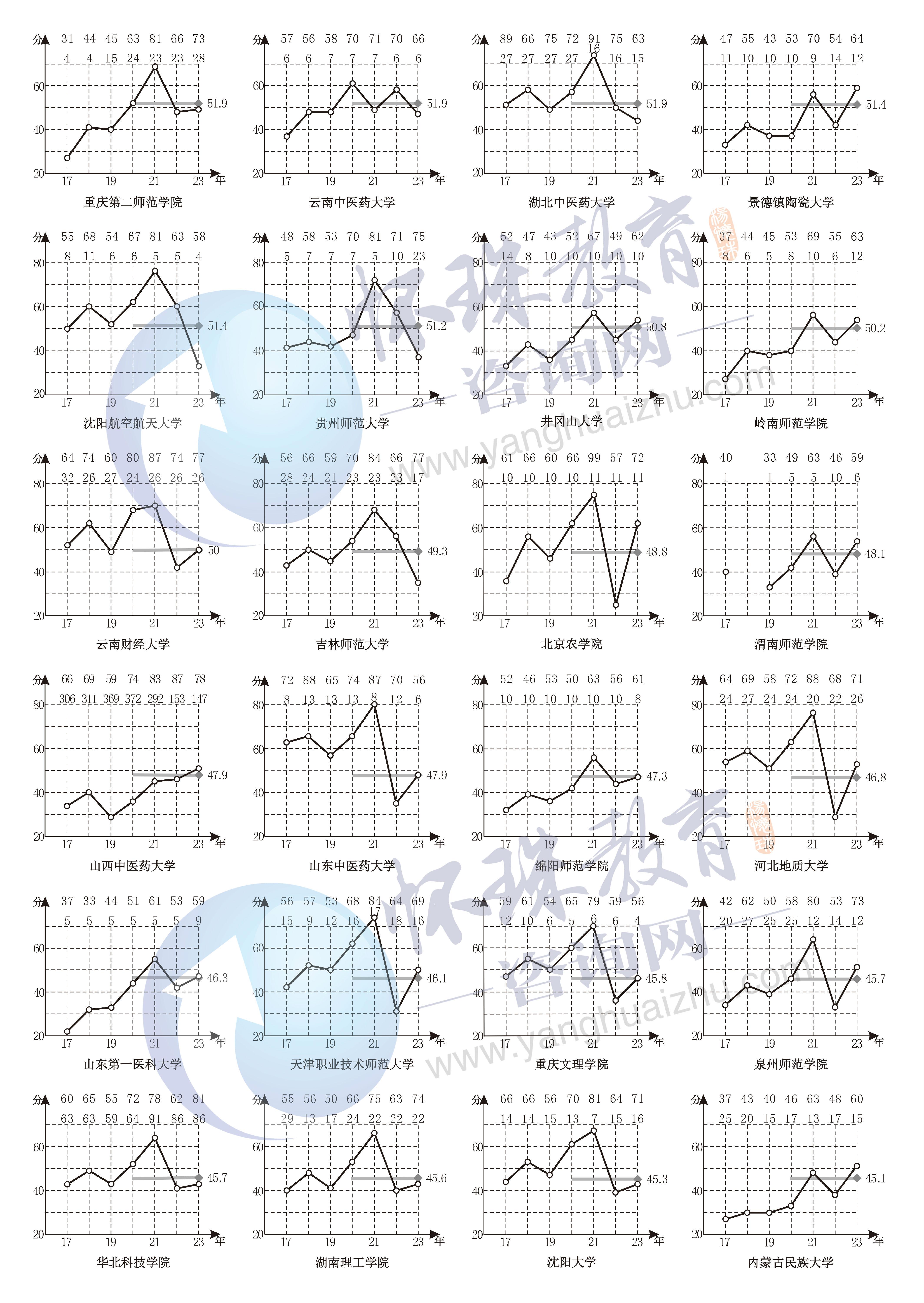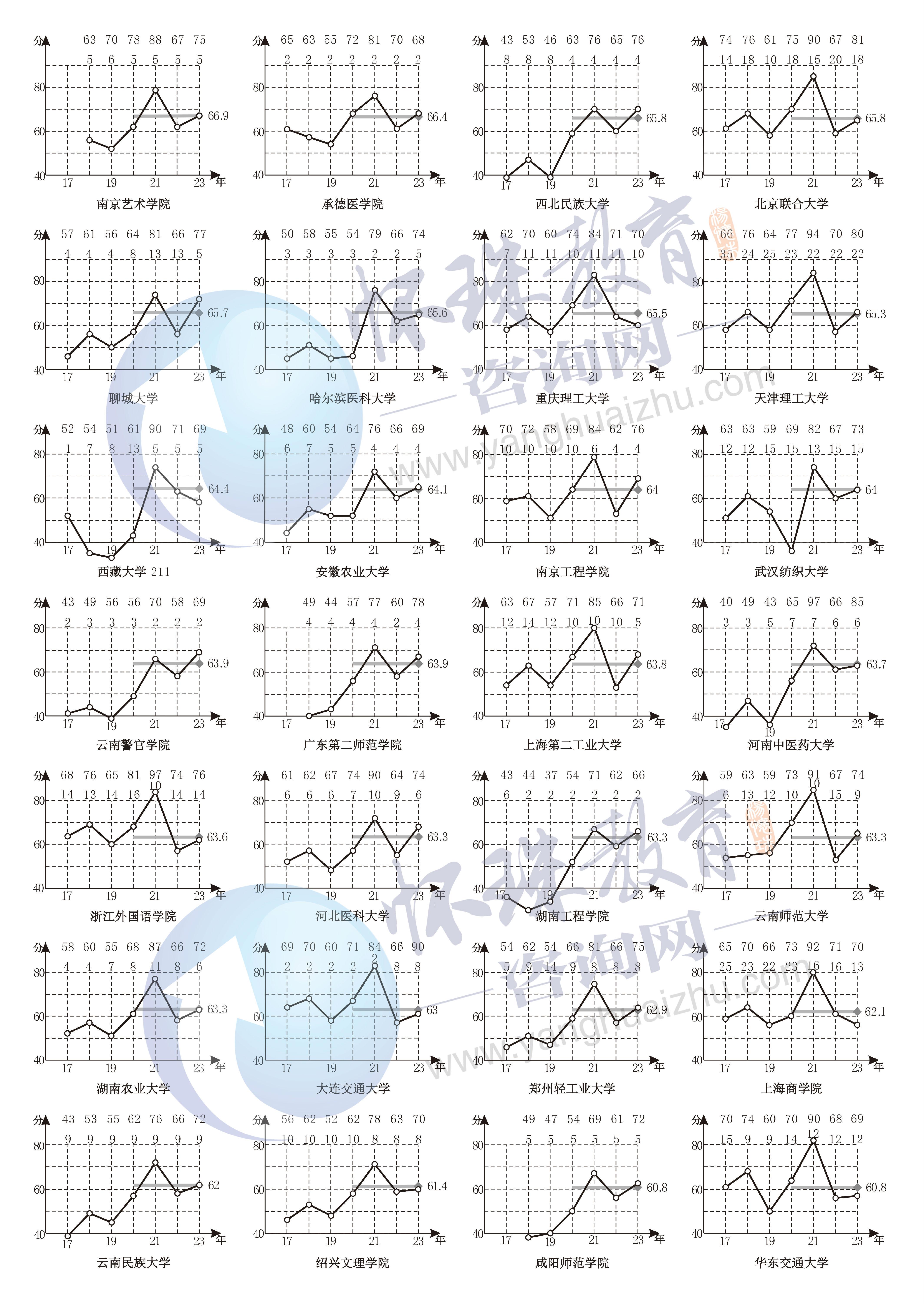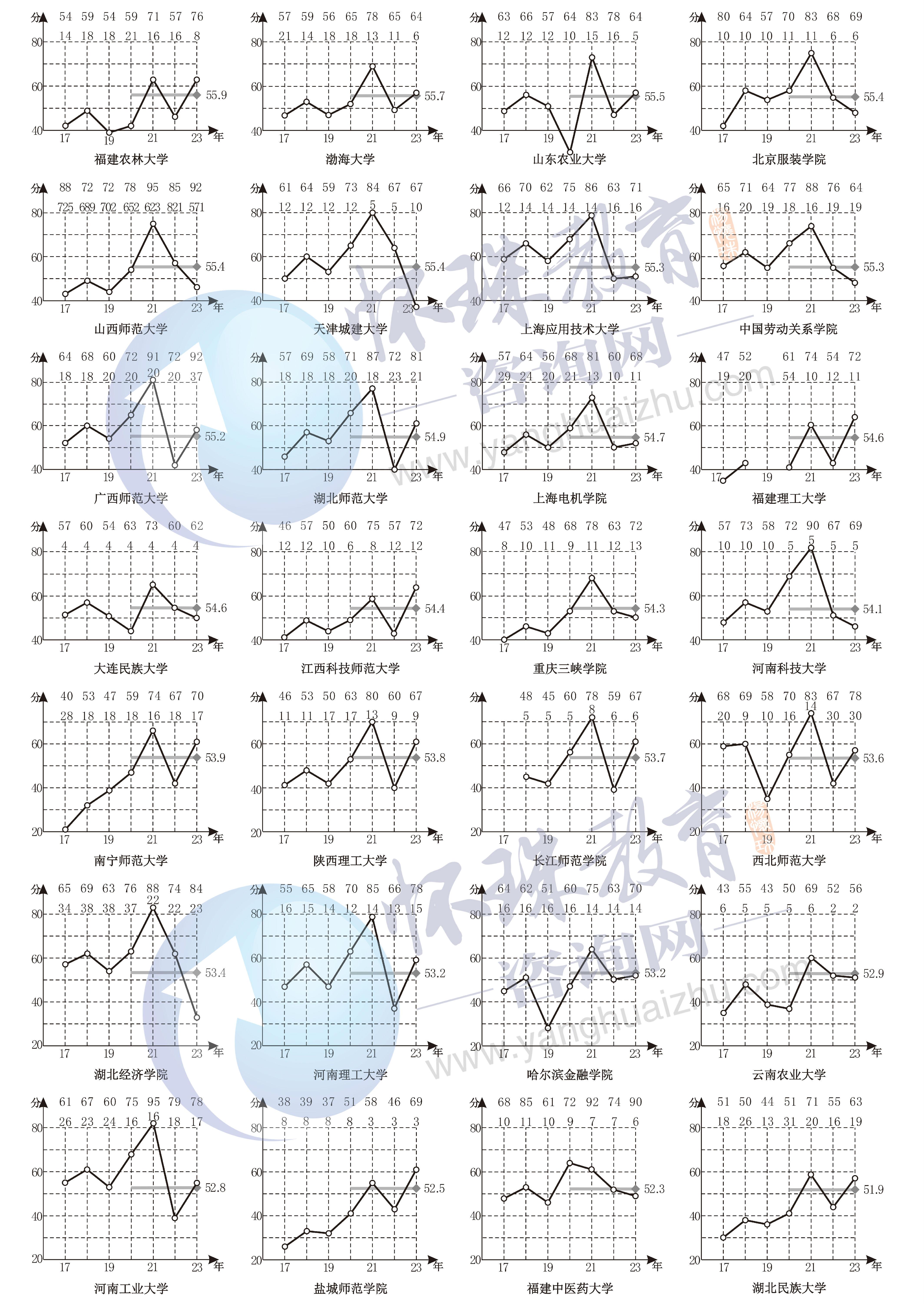 附录十六 2017~2023年第二批文科A类院校录取线走势图排序(2A文科)