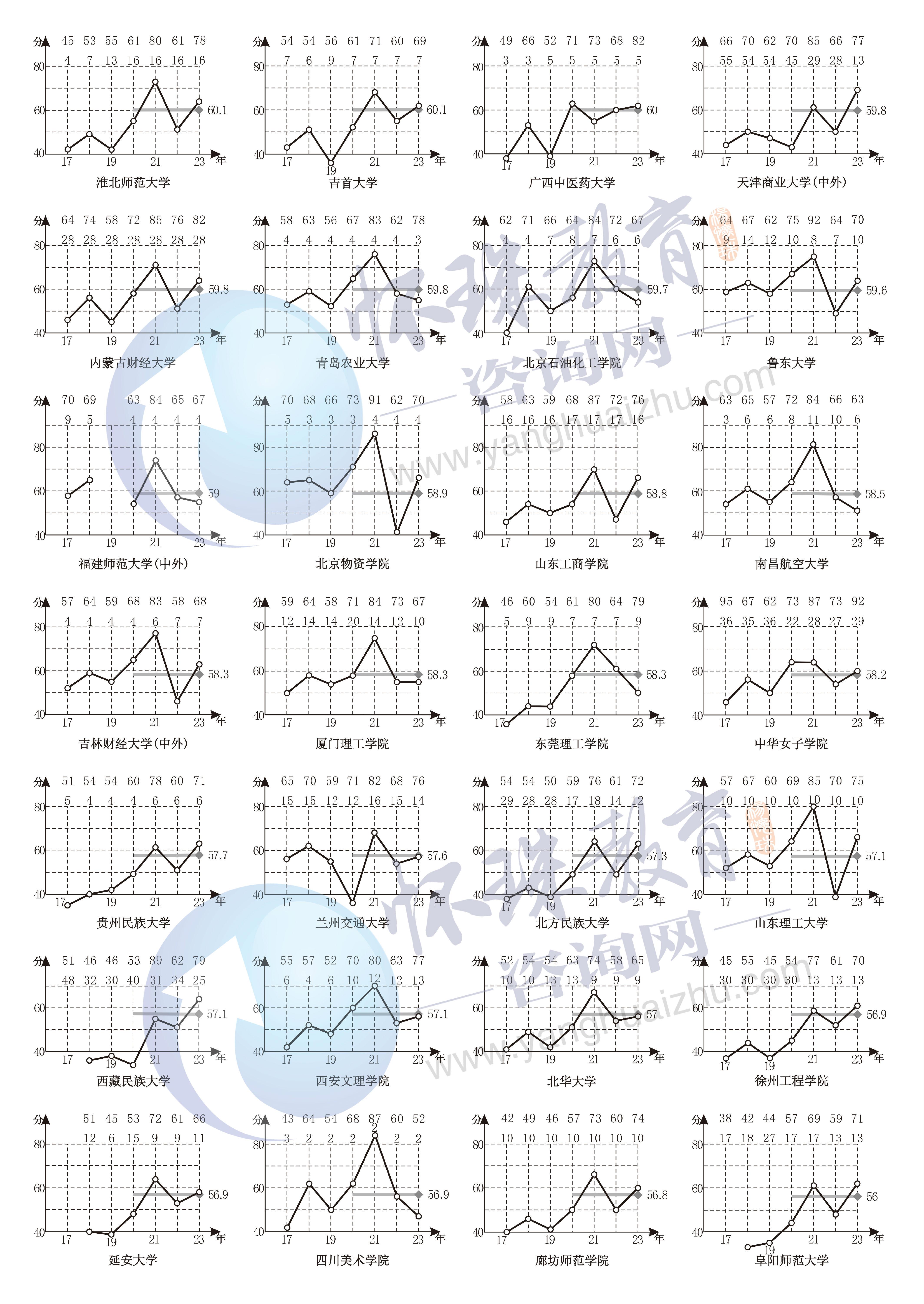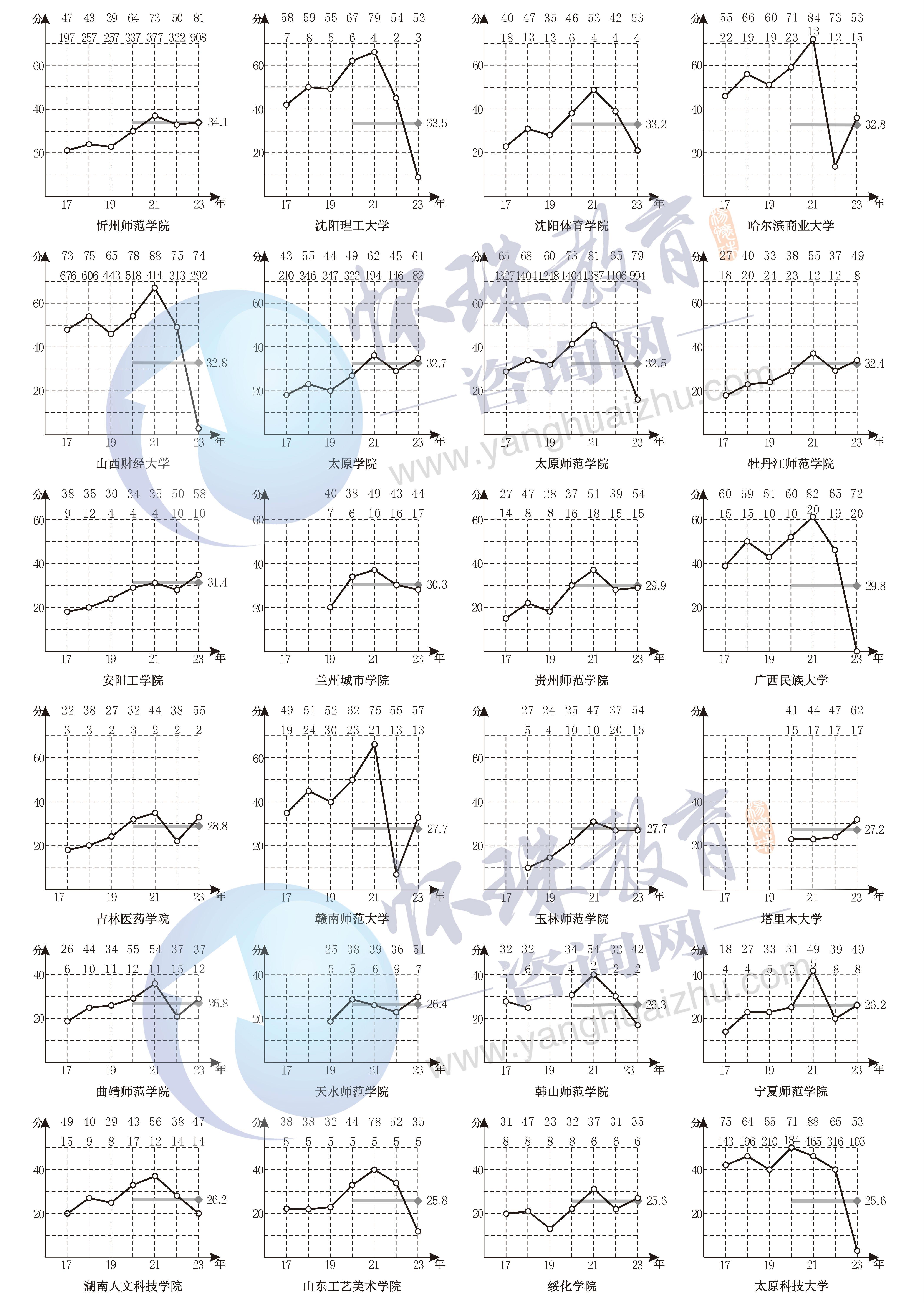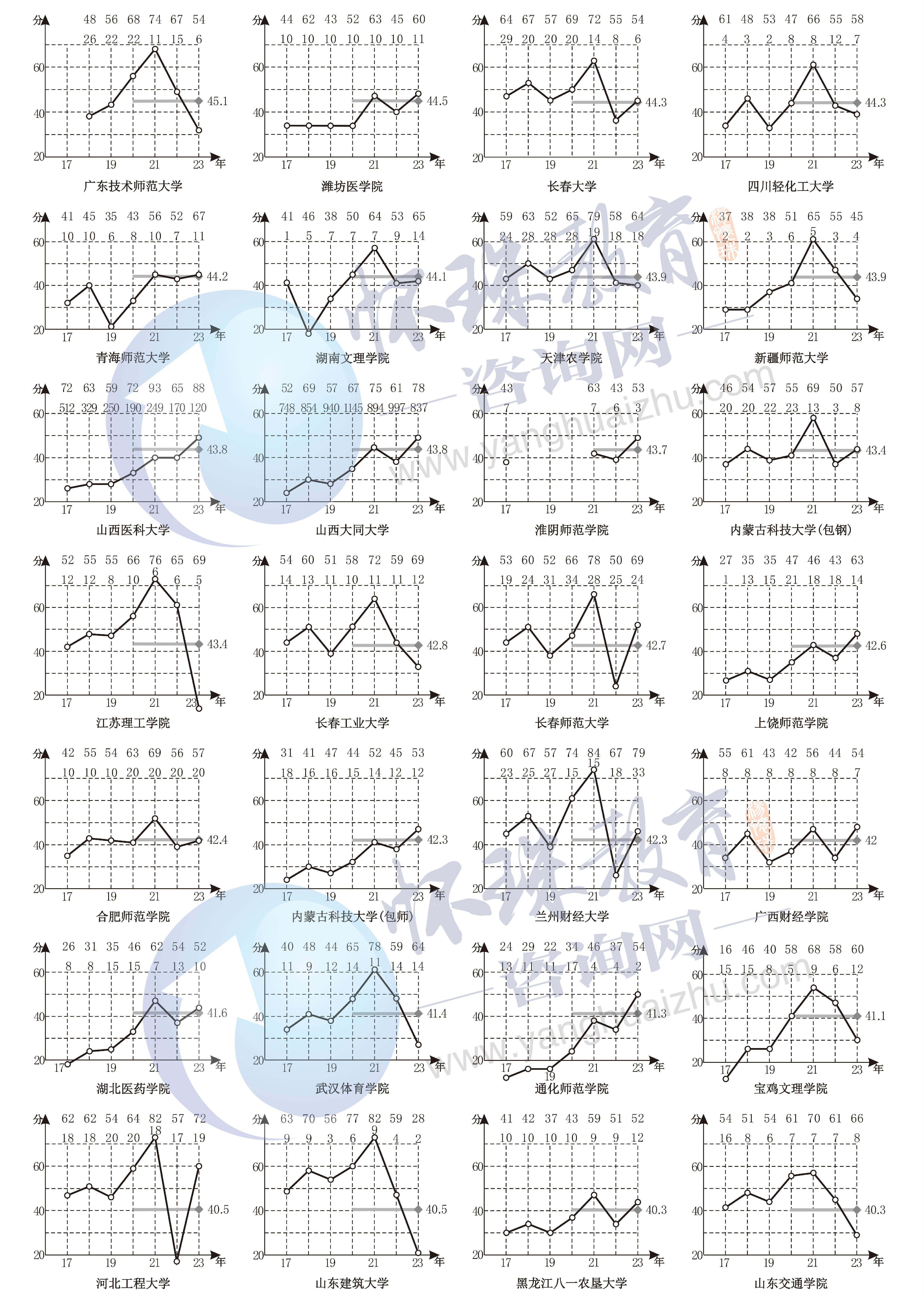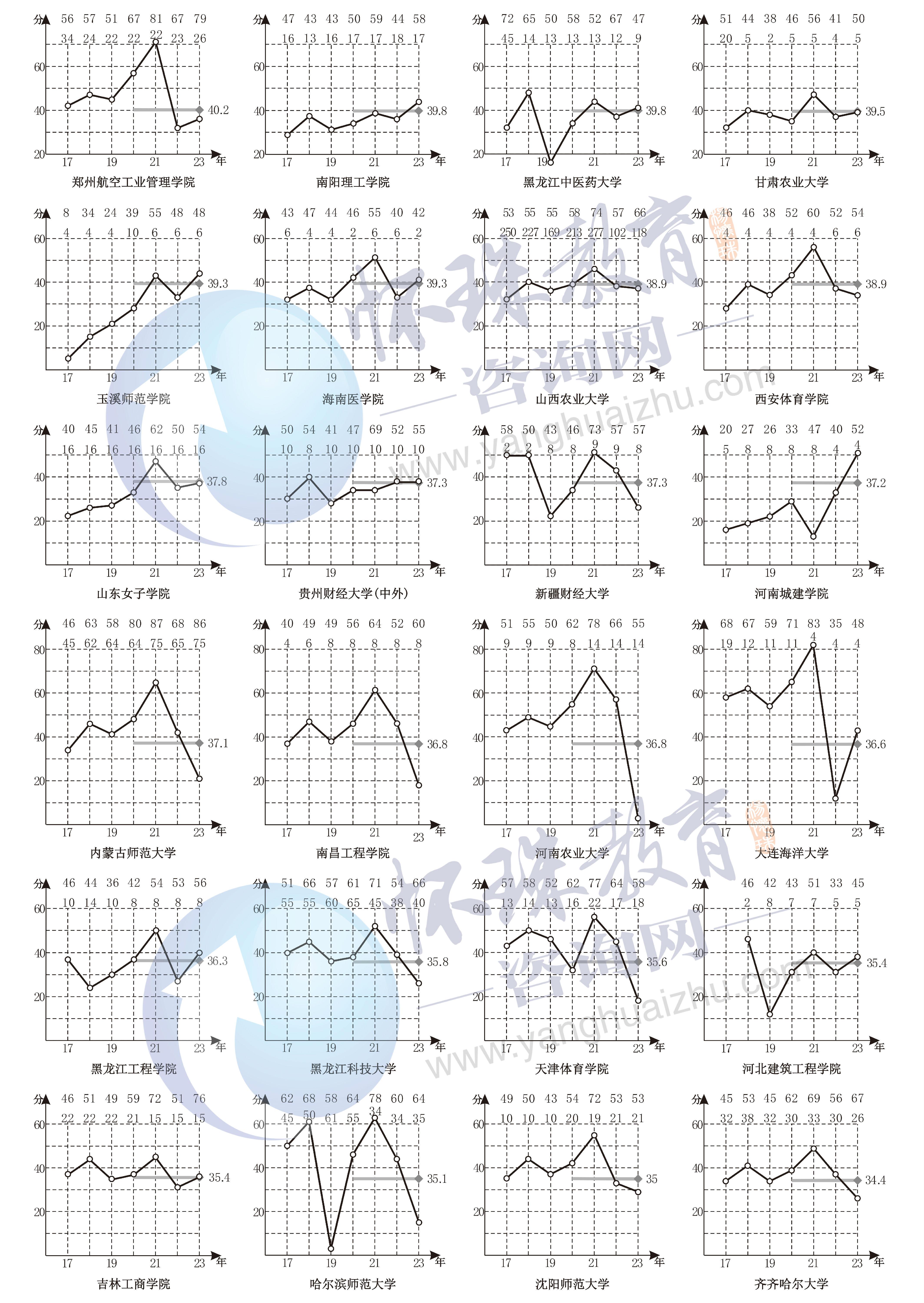 附录十六 2017~2023年第二批文科A类院校录取线走势图排序(2A文科)