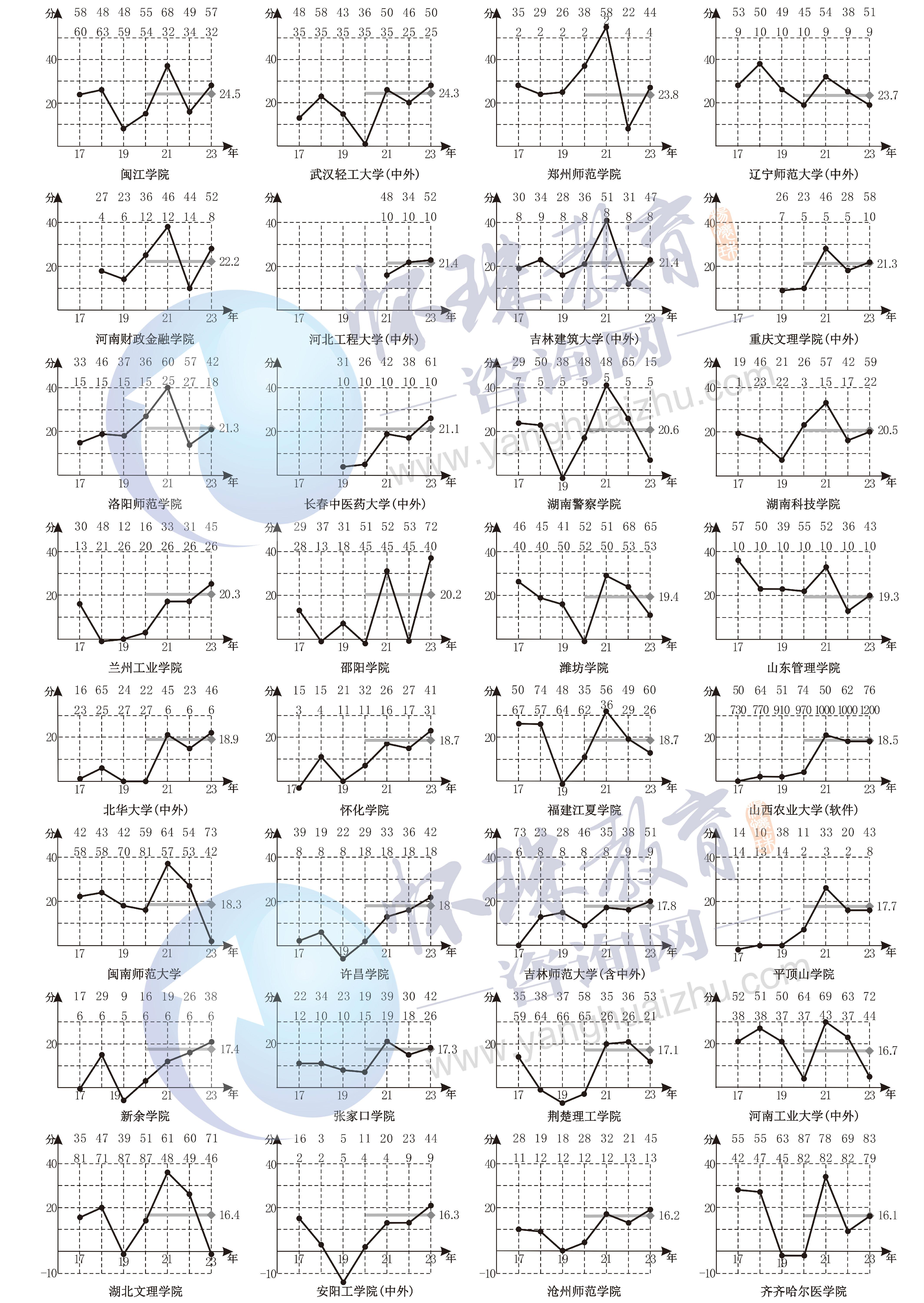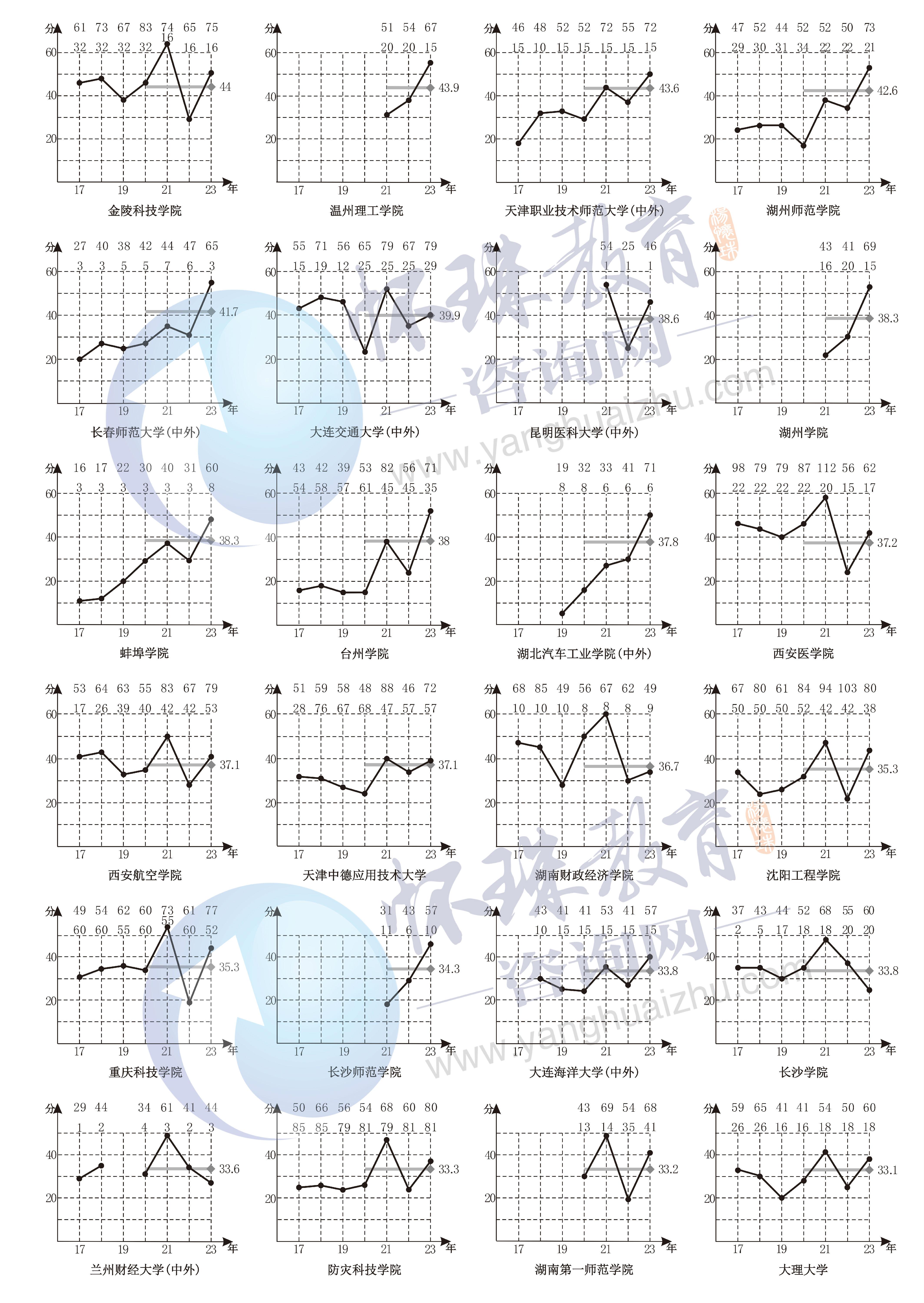 附录二十六 2017~2023年第二批理科B类院校录取线走势图排序(2B理科)