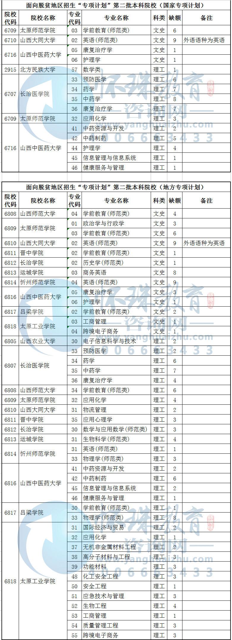 (面向脱贫地区招生“专项计划”第二批本科院校)