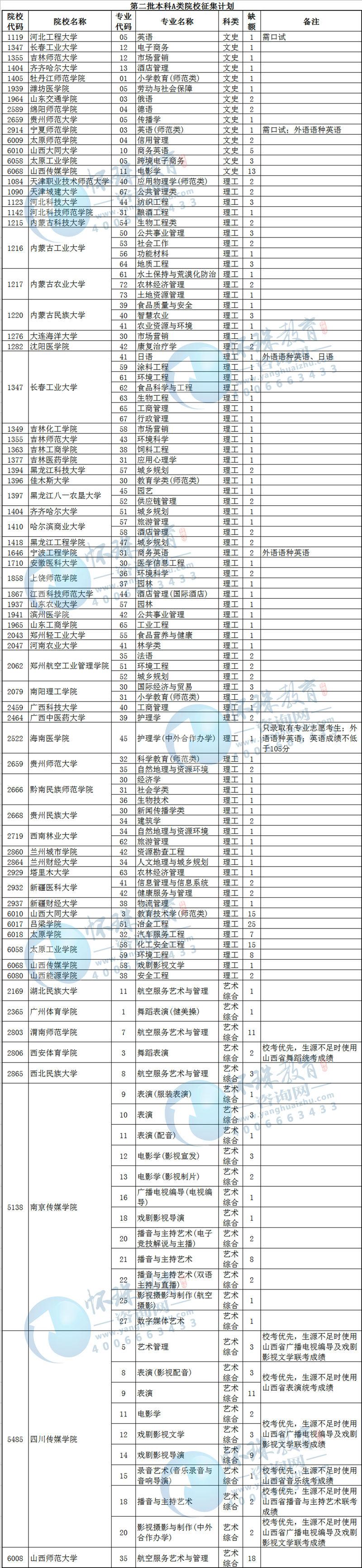 目前,我省第二批本科A类部分院校因生源不足或考生不服从专业调剂退档出现缺额。现予集中公布,公开征集志愿。