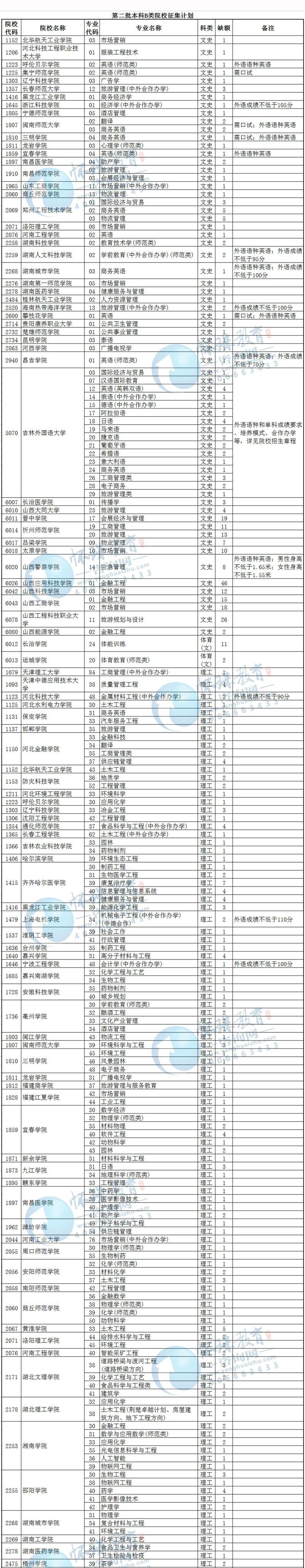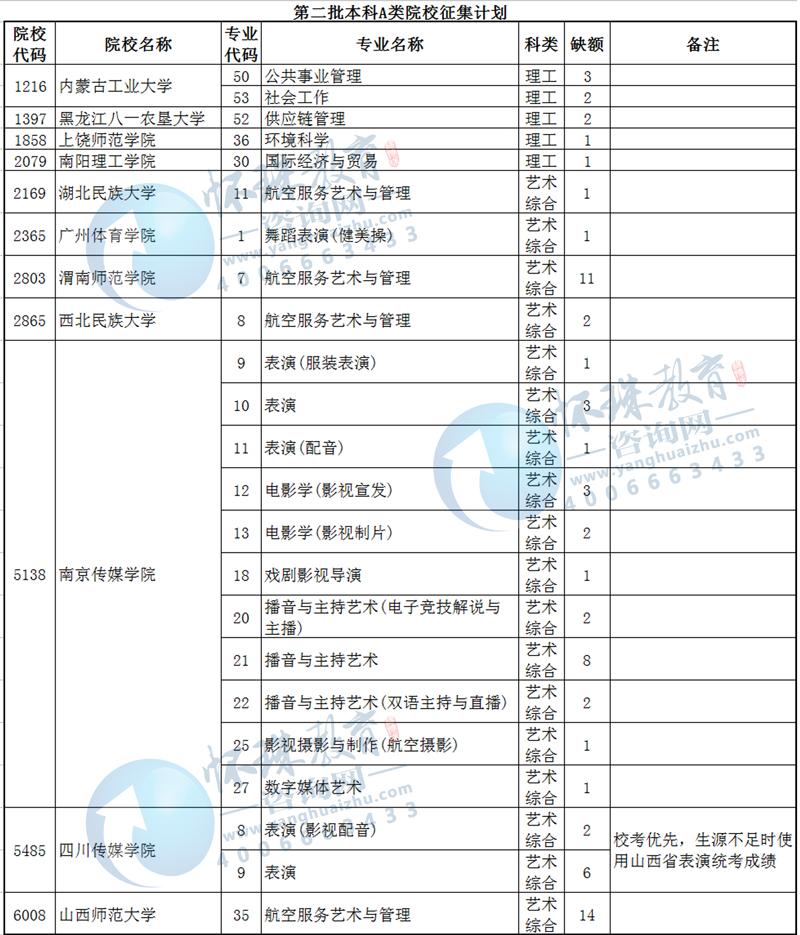 目前,我省第二批本科A类、B类部分院校因生源不足或考生不服从专业调剂退档出现缺额。现予集中公布,公开征集志愿。