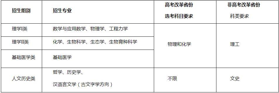 (二)各省(自治区、直辖市)招生专业、选考科目要求及计划以我校强基计划报名系统公布为准。