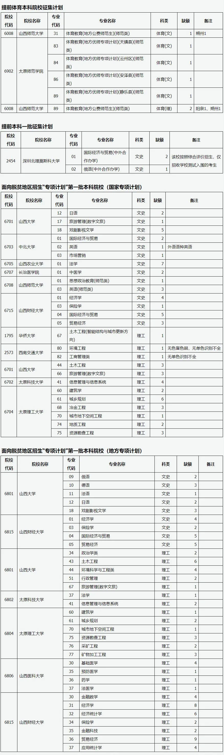 (提前体育本科、提前本科一批、面向脱贫地区招生“专项计划”第一批本科院校)