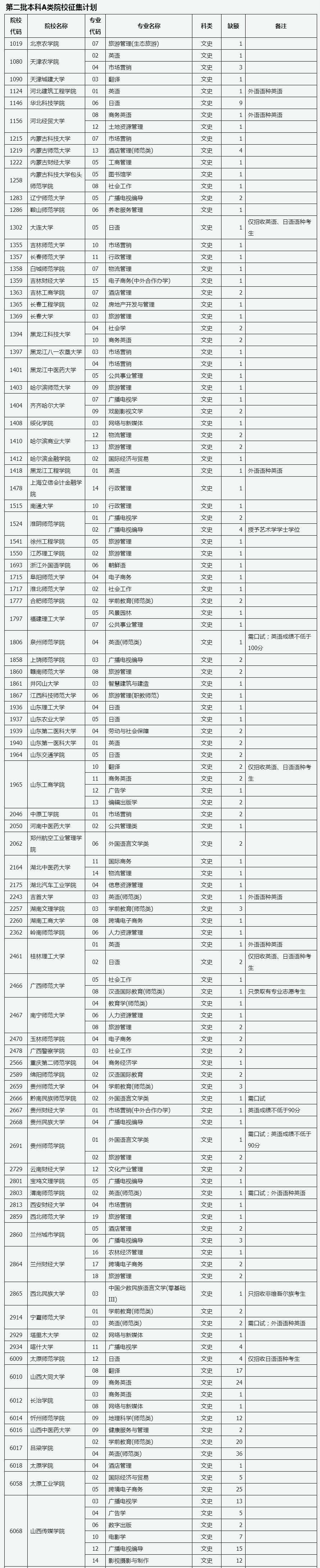 目前,我省第二批本科A类部分院校因生源不足或考生不服从专业调剂退档出现缺额。现予集中公布,公开征集志愿。