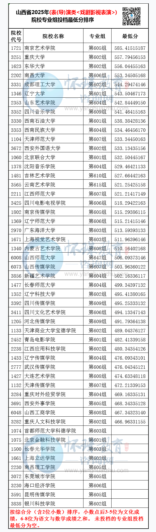 山西省2025年艺术本科批(表(导)演类<戏剧影视表演>)院校专业组投档最低分