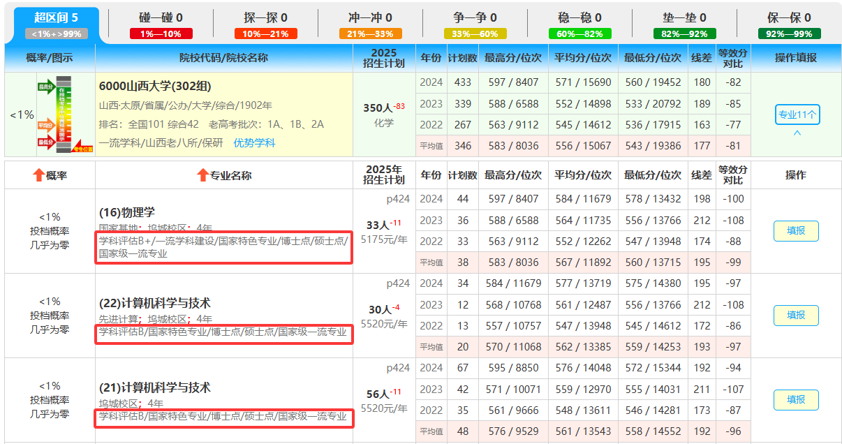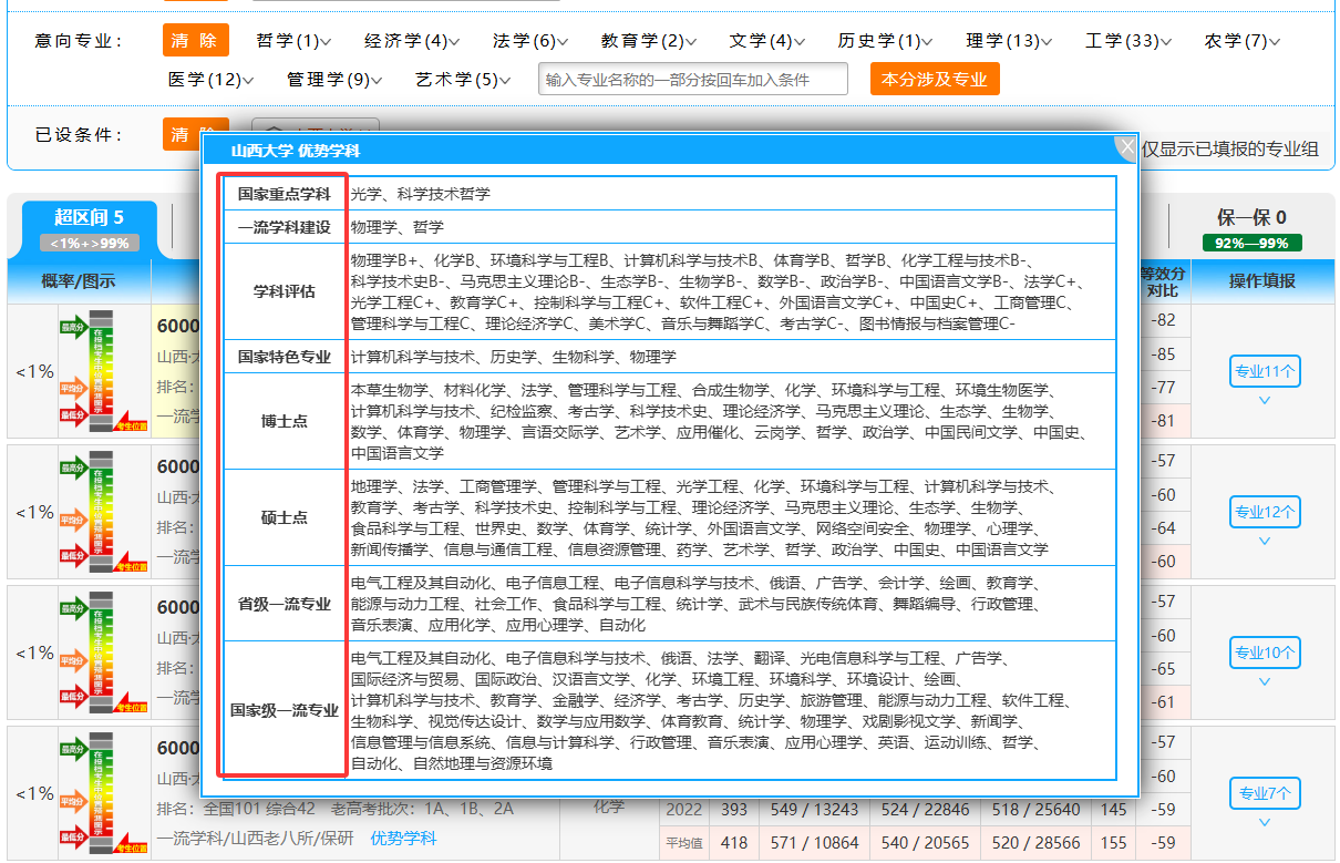 ⑤显示并标注院校优势学科(一流学科、学科评估、国家级省级特色专业、硕士点、博士点)等。