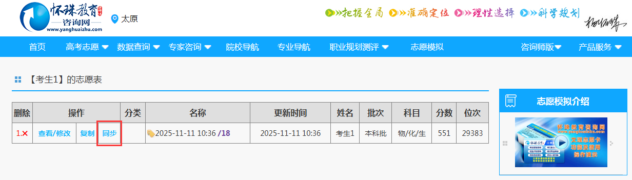 ③可修改已绑定用户自己初选的志愿方案,修改后可同步到自己的志愿表中,也可发送给已绑定考生。
