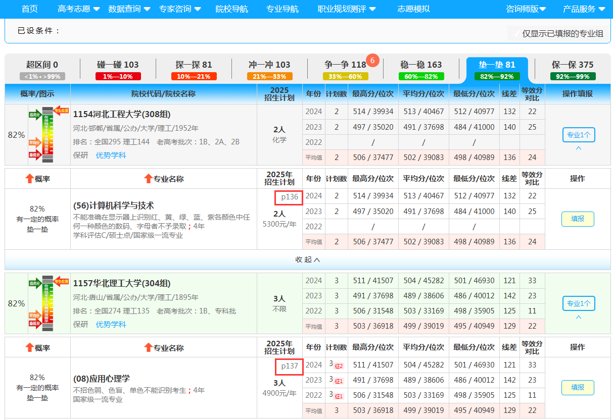 ⑦标注每个院校专业组在最新年份填报志愿指南书中的页码,方便与书对接,快速查找。